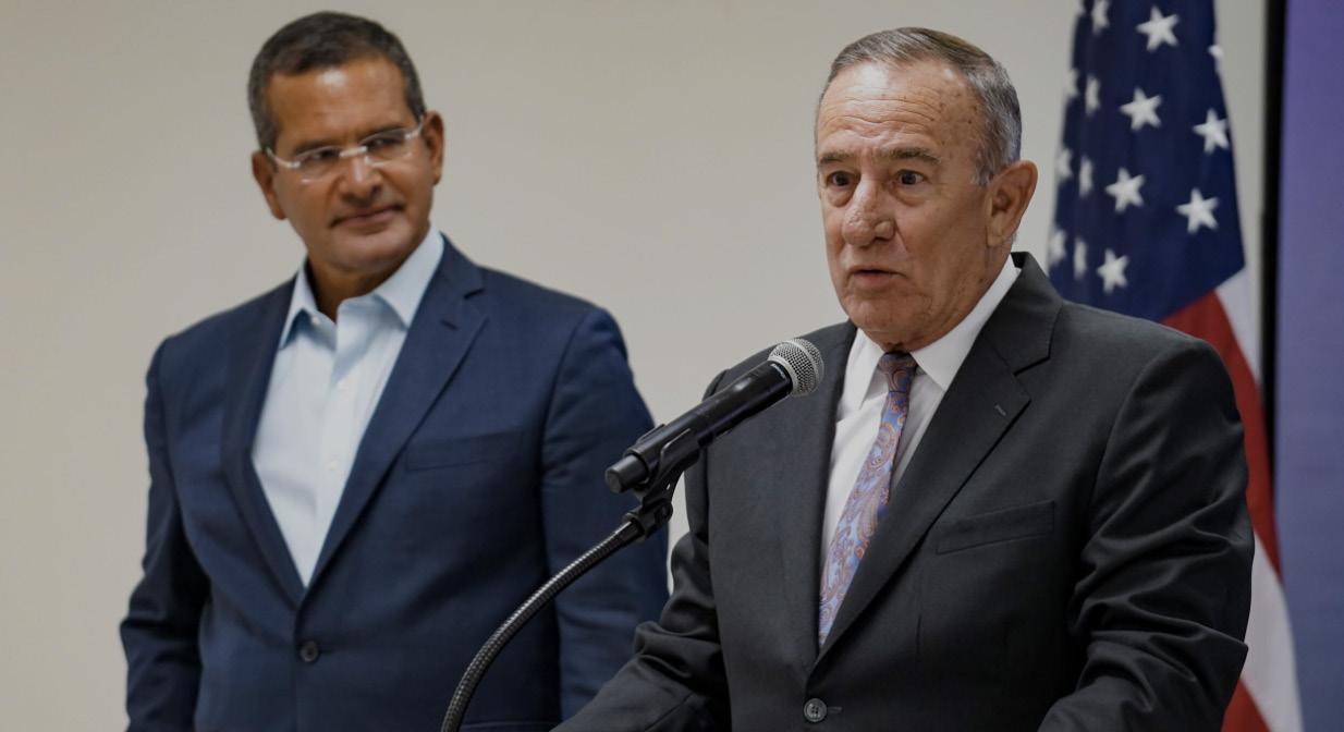 El gobernador de Puerto Rico, Pedro R. Pierluisi, junto al secretario del Departamento de Desarrollo Económico y Comercio (DDEC),