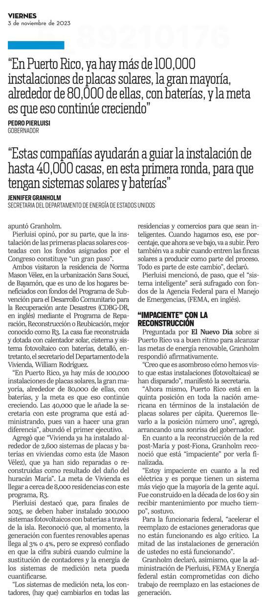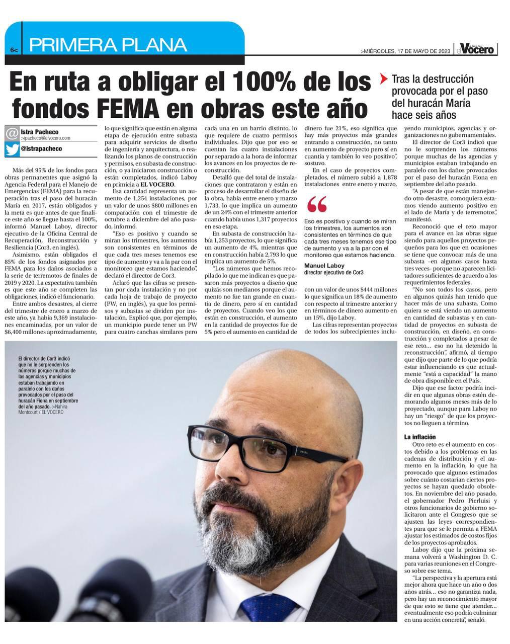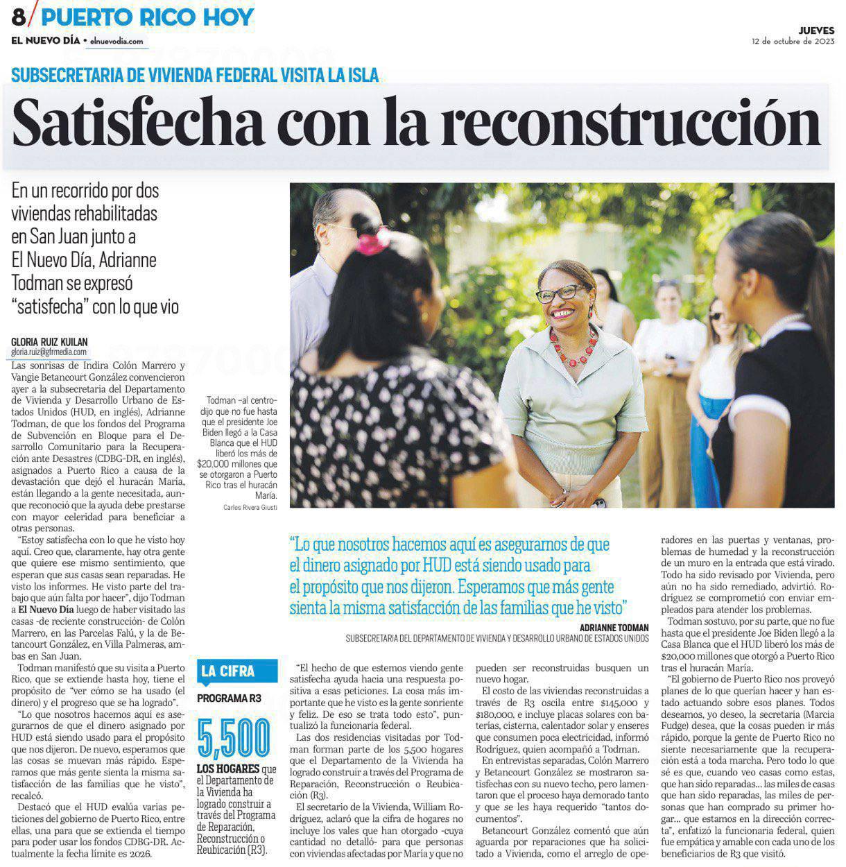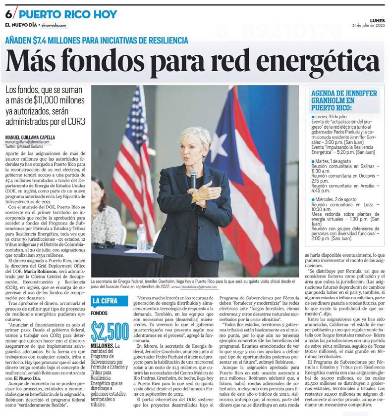 “La recuperación de Puerto Rico sigue a paso firme. Esto es producto del trabajo en conjunto que llevamos a cabo junto a FEMA. Un gran ejemplo es que a tan solo 15 meses del huracán Fiona ya se aprobaron $1,200 millones en asistencia directa por desastre a ciudadanos y ya se han autorizado $563 millones para