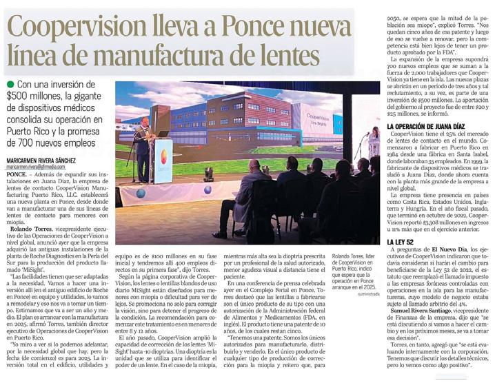en la Isla. Con esta expansión de la planta de manufactura de Innovative Medicine en Manatí, Ethicon aumentará su oferta de productos en lo que significa una nueva apuesta a Puerto Rico como lugar idóneo para su inversión de $168 millones. Esto está resultando en la creación de más de 300 nuevos empleos bien remunerados, aumentando su plantilla de cerca de 1,500 empleados en la planta hermana de San Lorenzo’, sostuvo el gobernador.