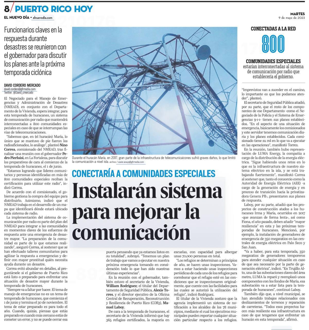 El gobierno de Puerto Rico junto a la Agencia Federal para el Manejo de Emergencias (FEMA, en inglés) anunciaron un acuerdo de colaboración mediante el cual se adquirirán unidades de generación temporera en Palo Seco y San Juan con el fin de buscar
