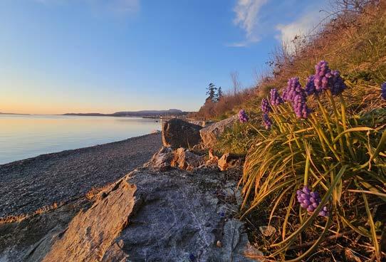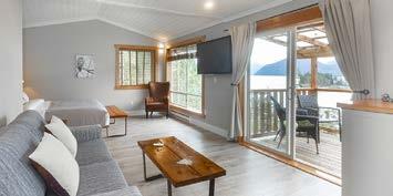 Three hotel rooms with a large shared balcony and view of the ocean, no kitchen or bathtubs but lovely showers. Four beautiful one-bedroom suites, two with sweeping ocean views. Suites have a full kitchen and jetted bath tubs. Free WiFi and parking. Award-winning spa onsite. Close to restaurants, shopping, ferry and beaches. 4555 Marine Avenue • 604.485.9521 powellriverhotel.com • beyondblissspa.com