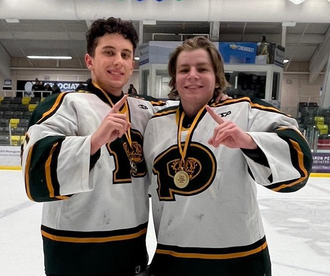 TOURNAMENT TOPPERS: Powell River U18 Kings goaltenders Leo Brosseau [left] and Luke Dennis backstopped their team to a gold medal at the Coquitlam Gold Classic. Their team went undefeated en route to the top of the podium with four round-robin wins, a shutout in the semifinal and a decisive 6-2 win over Winnipeg in the final. CHUCK SCHREIBER PHOTO