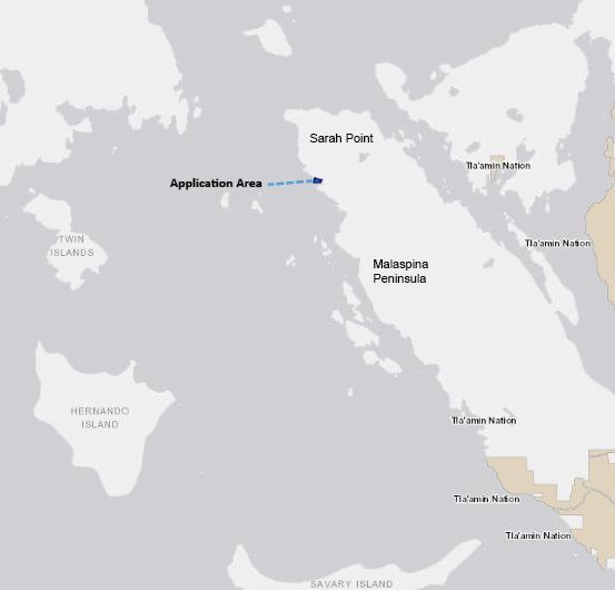Existing tenure and operating aquaculture facility located in Trevenen Bay, approximately at 50° 1’ 6.07” N, 124° 44’ 21.15” W, located on unsurveyed Crown Foreshore or land being part of the bed of Trevenen Bay together with District Lot 3933, Group 1, New Westminster District, in Lund, in the Province of British Columbia.