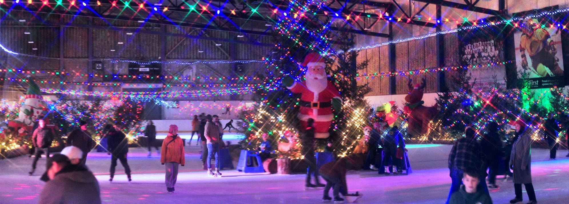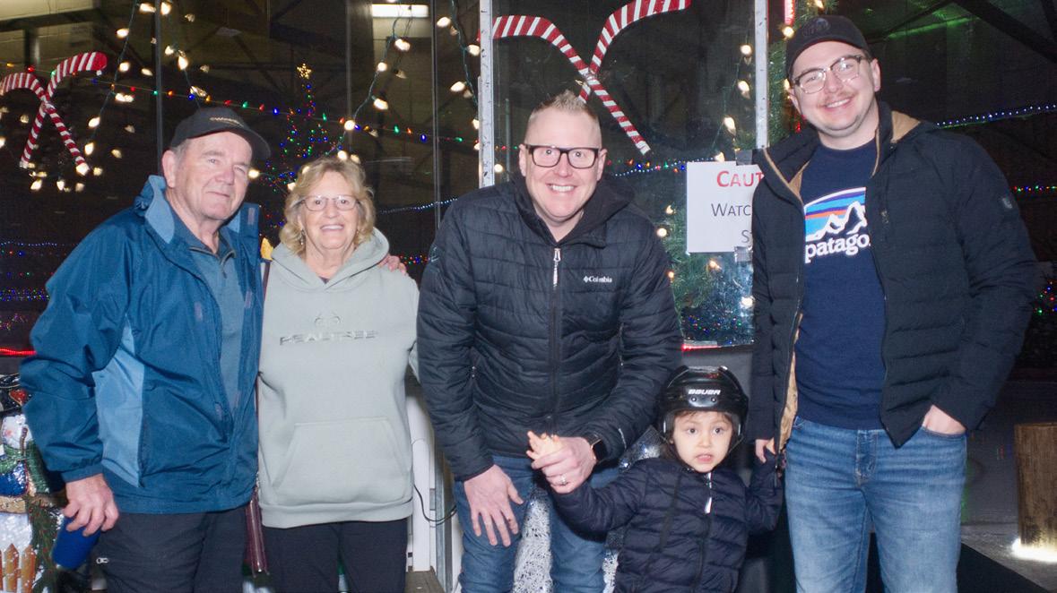 Powell River Parks and Recreation’s team spent three days setting up Winter Wonderland on the rink at Powell River Recreation Complex. Staff members helped decorate, including setting up the logs and putting up the trees, which were delivered by the Junior Forest Wardens. Snow from the ice surfaces was used to fill between the logs and boards. Winter Wonderland was open from December 6 to 29.