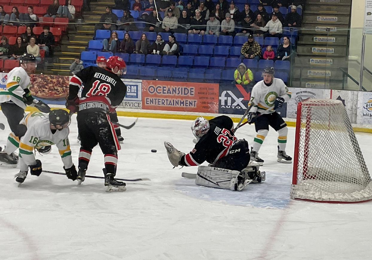 Day broke through late in the first to double the Kermodes’ lead. Powell River forward William Hawkins had a strong back-check to keep the deficit at two early in the second period, but two quick goals early in the middle stanza, including Day’s second of the game, put the Kings behind even further.