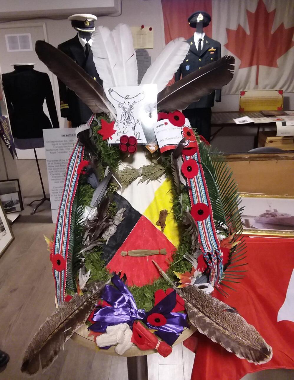 REFLECTING TRADITIONS: National Indigenous Veterans Day will be marked by Royal Canadian Legion Branch 232 members, Texada Island residents and guests on Friday, November 7. The photo above is of an Indigenous veterans wreath that was created to honour First Nations culture and Indigenous people who fought during war time. CONTRIBUTED PHOTO