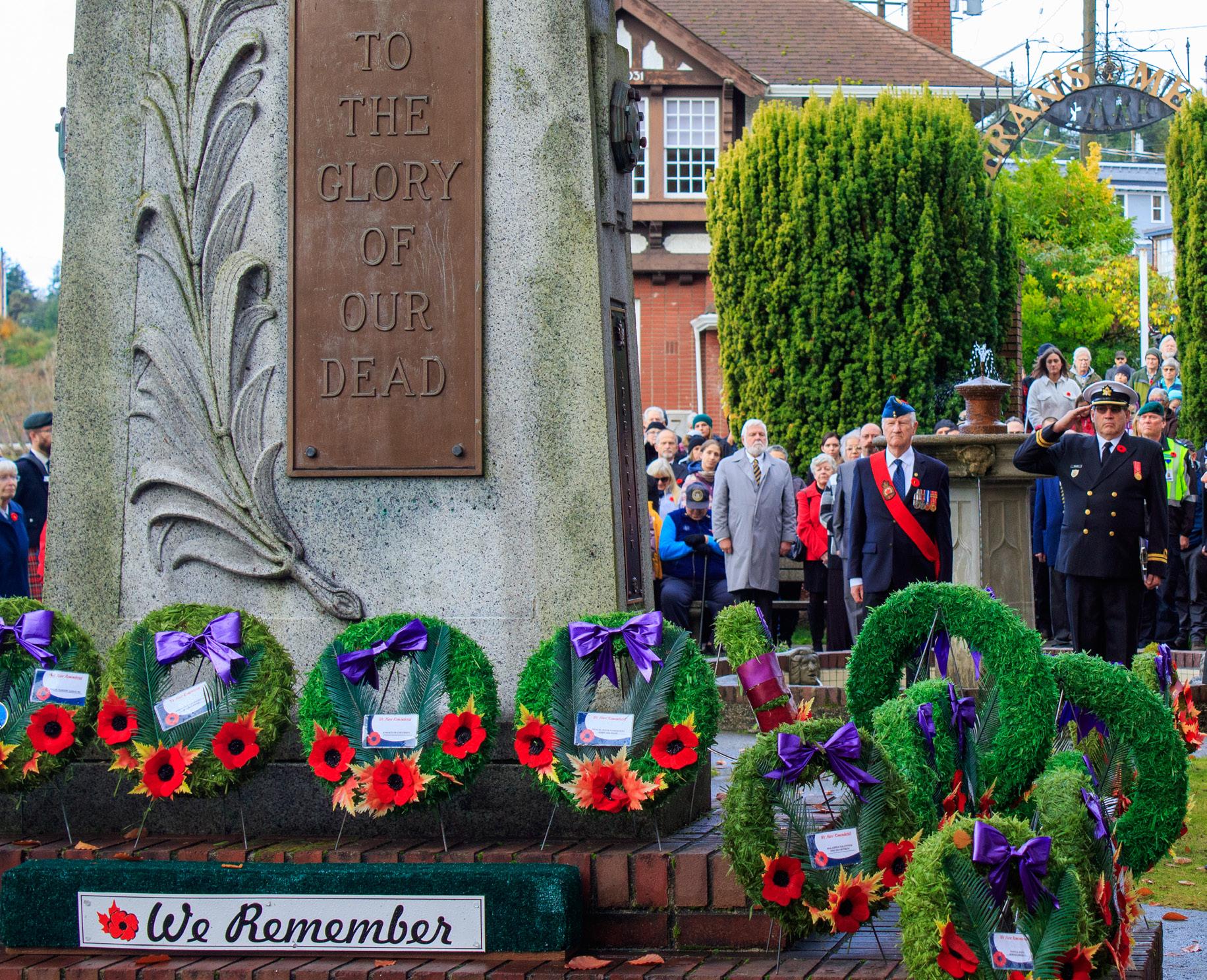 The parade to the Cenotaph in Veteran’s Memorial Park begins at 10:50 am, followed by recognition,