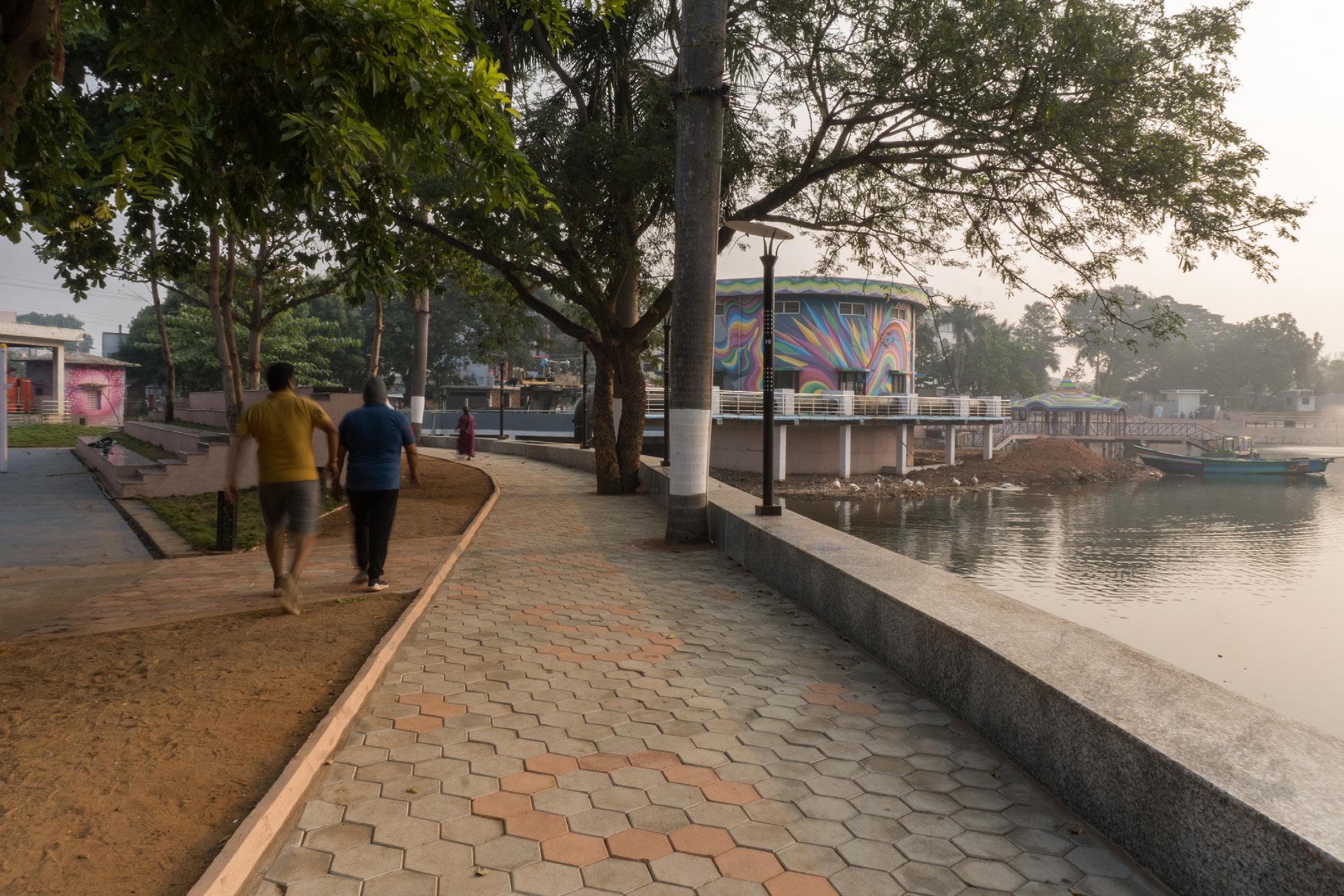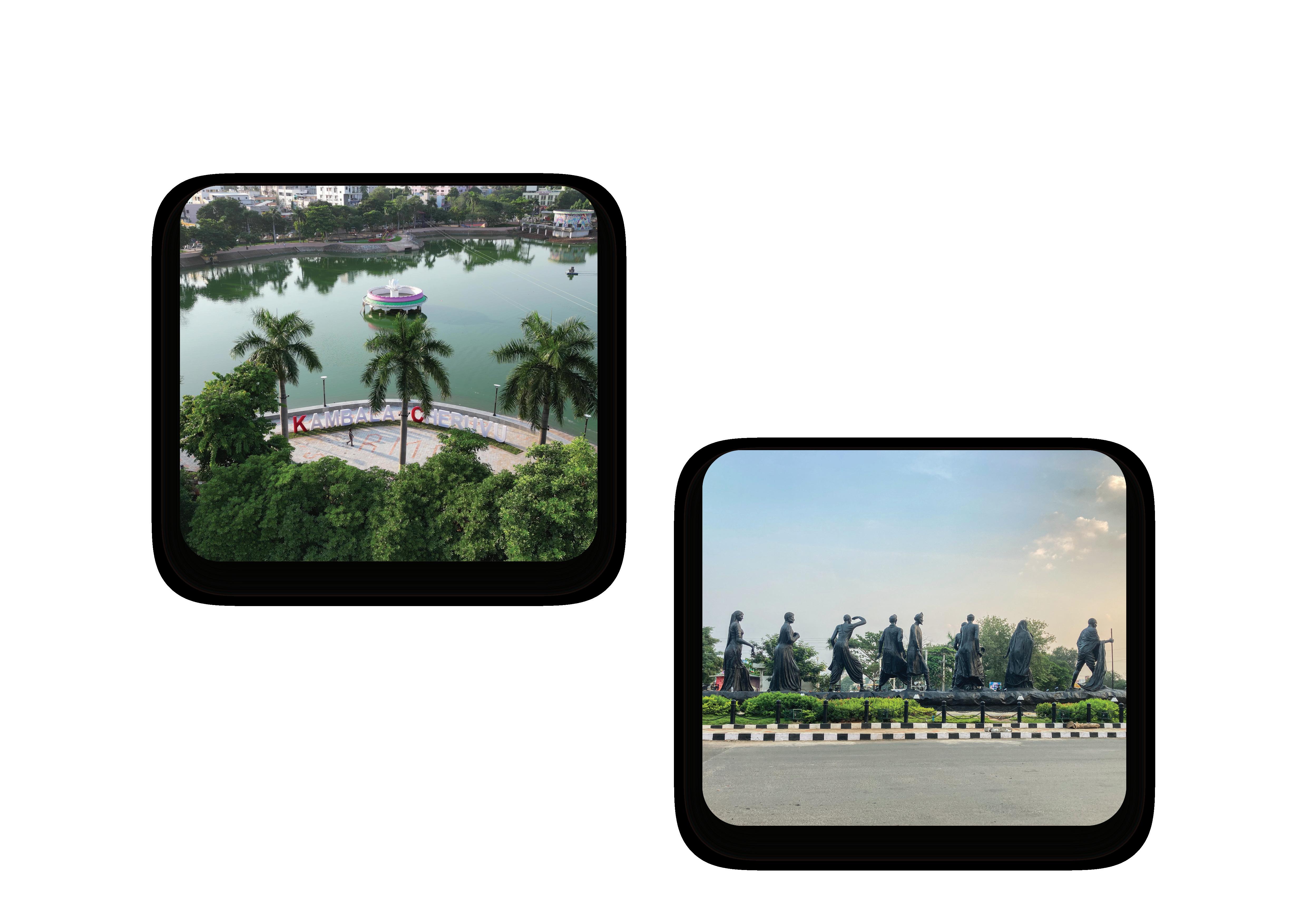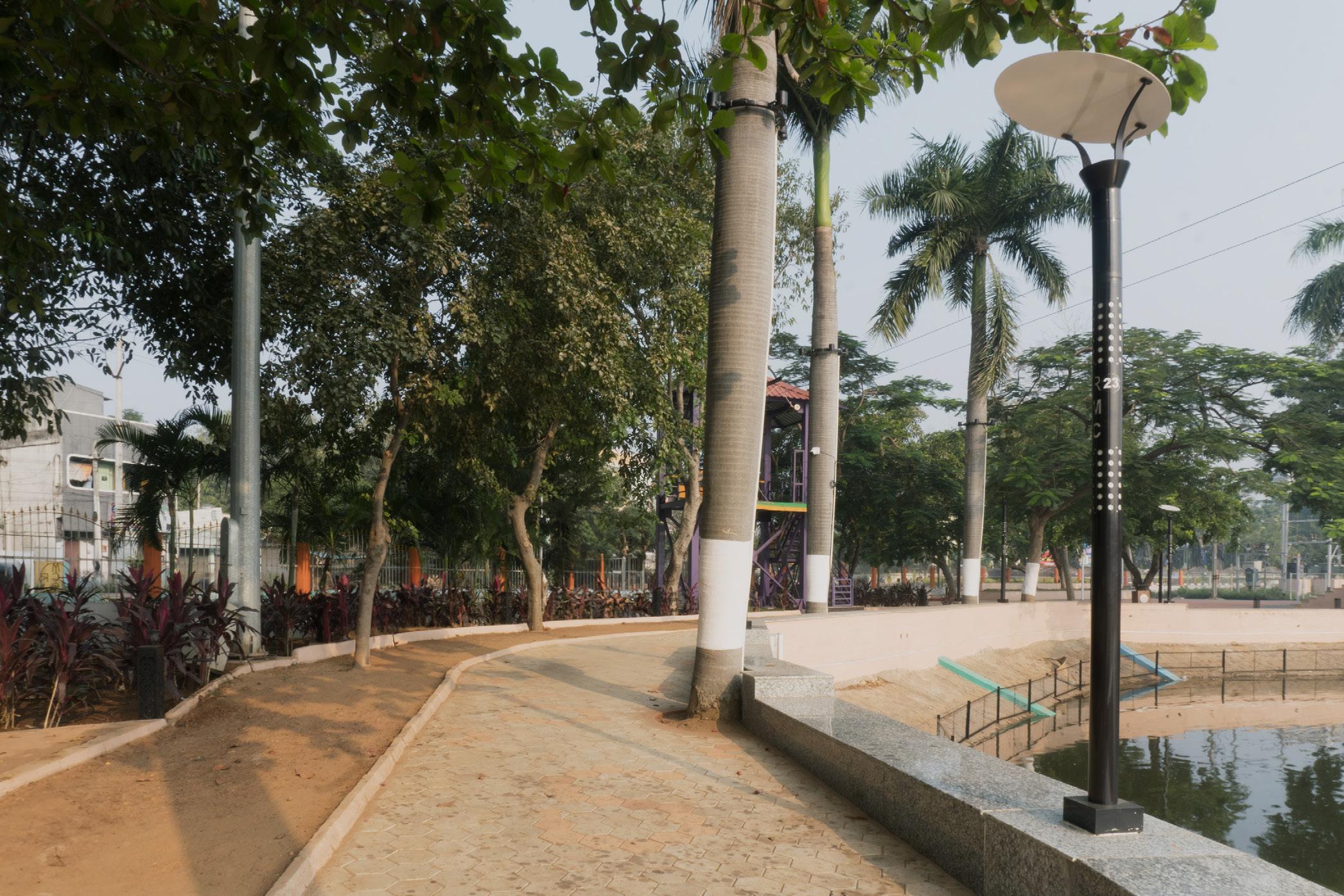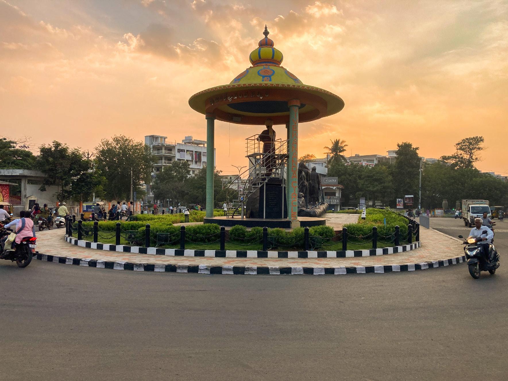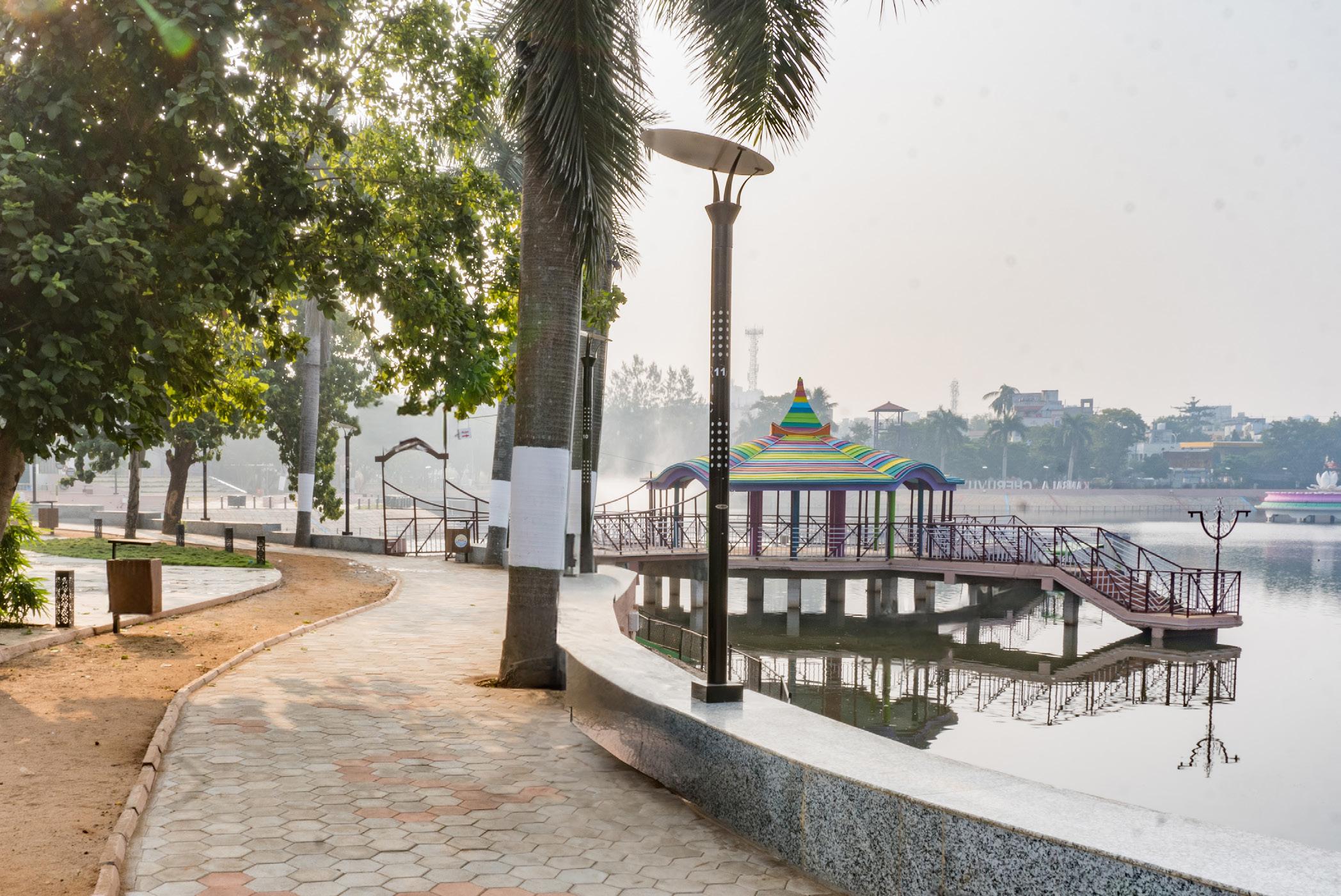 The redevelopment of Vivekananda junction, the busiest junction with heavy traffic near Kambala Cheruvu is a significant urban redevelopment project that has greatly improved the functionality and aesthetics of this city intersection. The redevelopment began with a comprehensive reorganisation of the rightof-way addressing geometry issues and ensuring smoother traffic movement and safety through the intersection. The redevelopment has not only improved the functionality and safety of the intersection but has also added cultural and historical significance to the area through the Dandi March installation. It is a testament to thoughtful urban planning and design that enhances both the practical and aesthetic aspects of the city’s infrastructure.