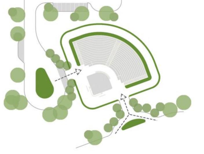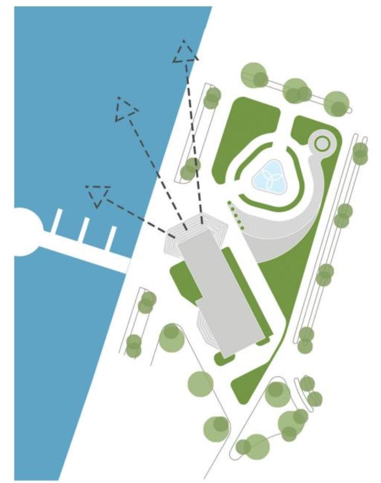 Landscape design around the central island plaza