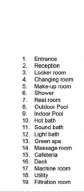 The main functions distributed around both the building and the site are: a restaurant, a wellness circuit and a beauty circuit. Other features, such as external pools and gardens, complement the design.