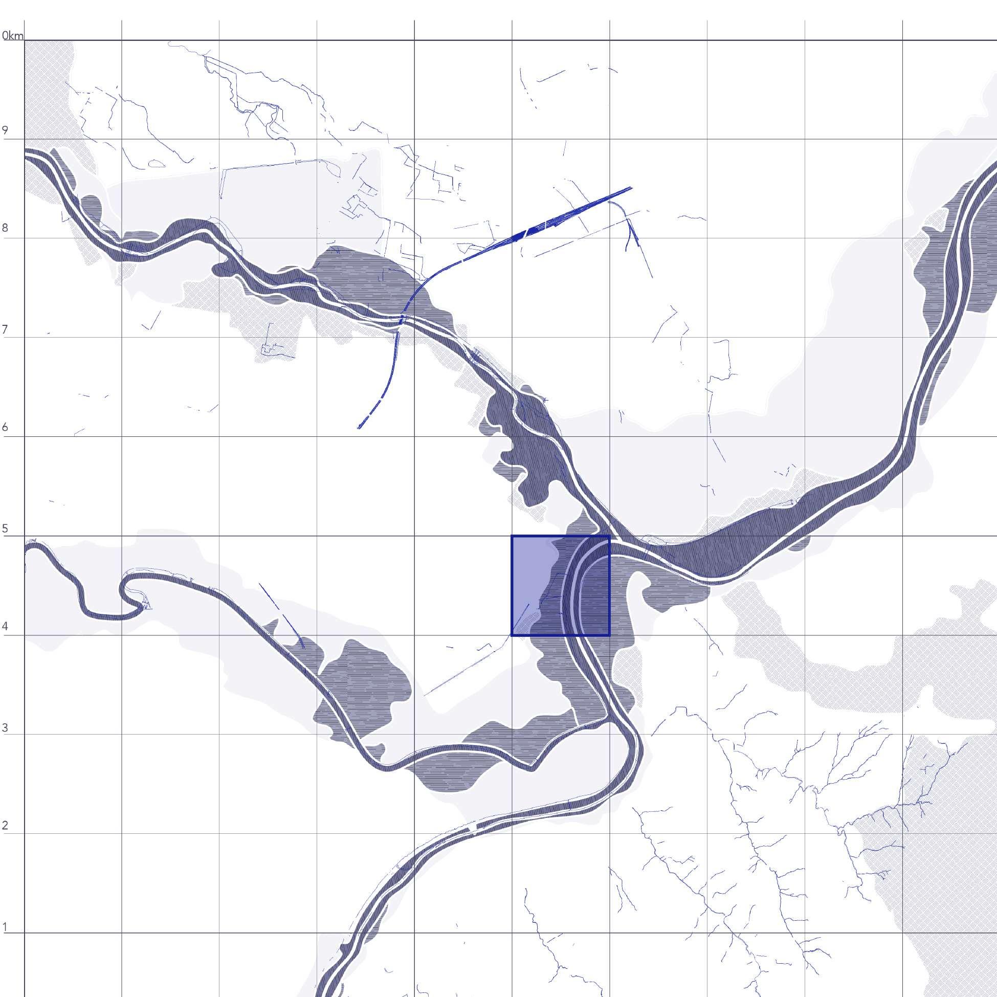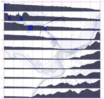 SITE TEXTURES Connections TYPE A | Building typology TYPE B Building typology TYPE C | Building typology TYPE D | Water traces 0 1 2 3 4 5 6 7 8 9 10Km Water traces Terrain Section Built mass TYPE A TYPE B TYPE C TYPE D