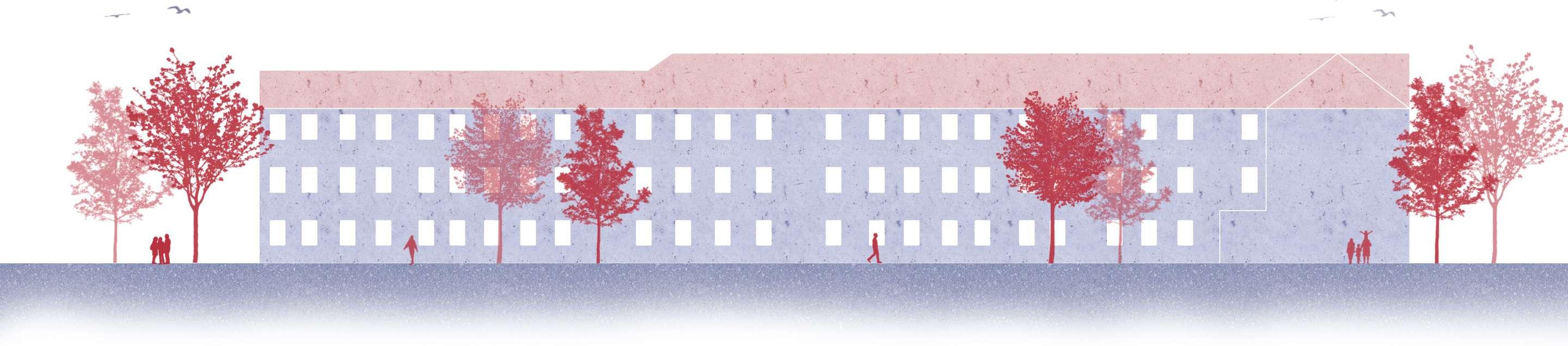 Restoring the old building and adding new roof and exterior facade to the student housing.