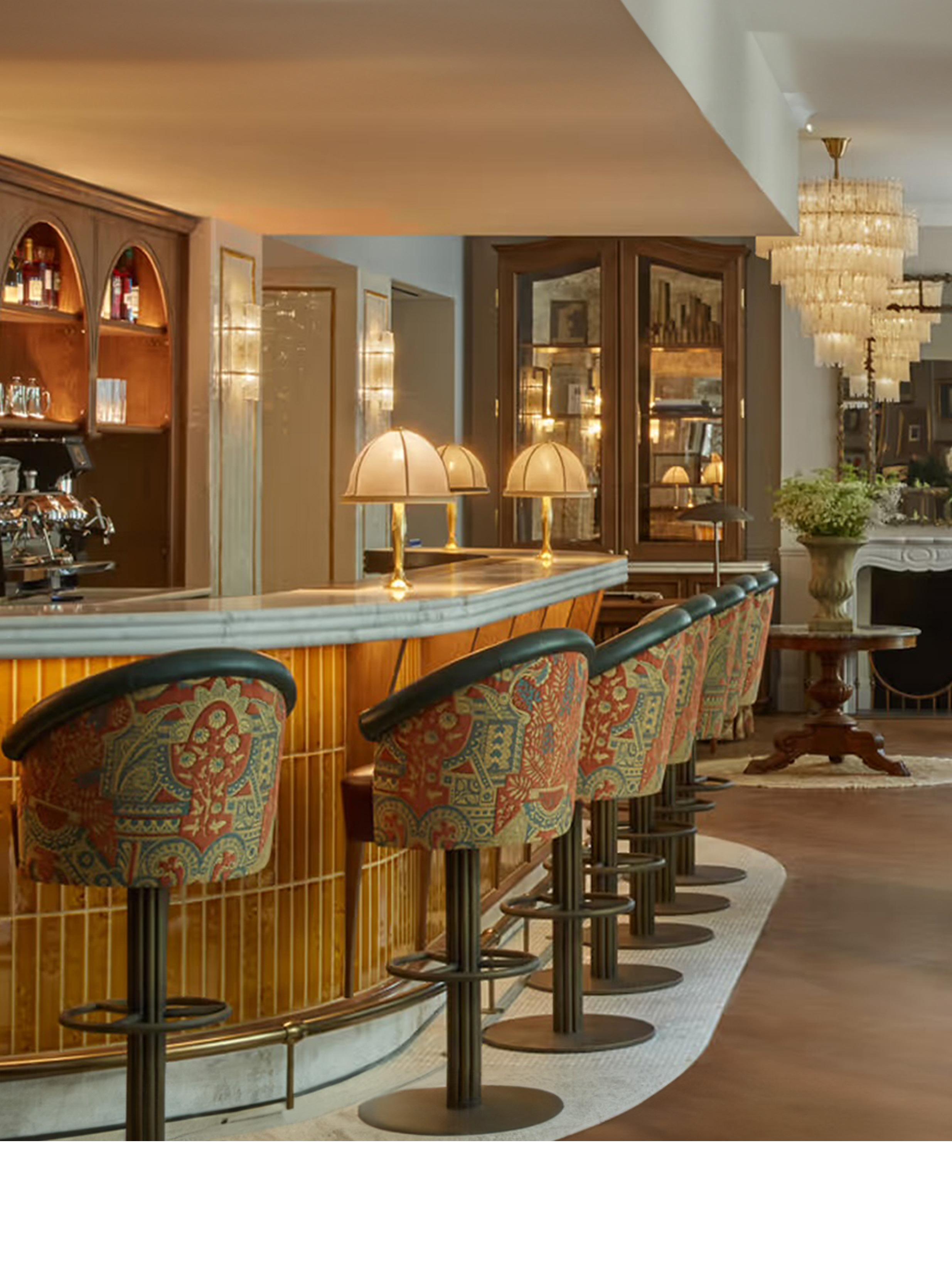 worked closely with London based Grapes Design, to create the bespoke tables and chairs, which enhance the eye-catching interior.