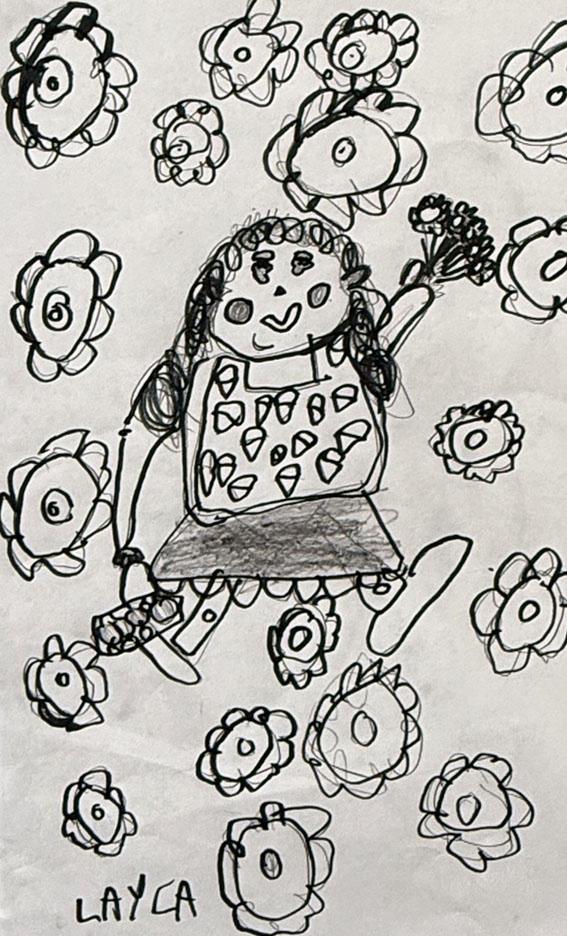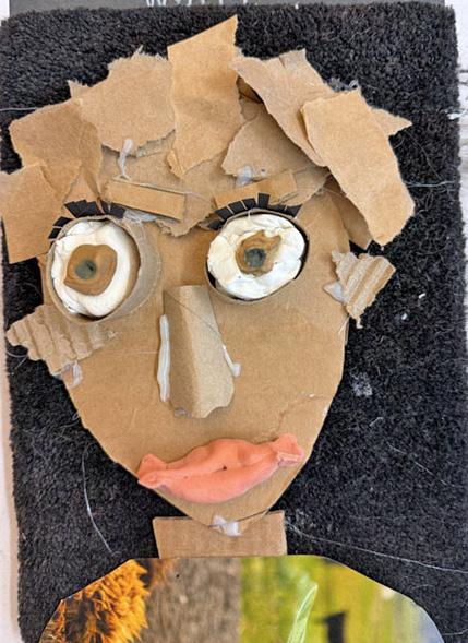 The students in Youngers created selfportraits with black markers and included a special activity they love doing, Bridge students created a 3D tree sculpture out of cardboard and used their imagination to sculpt a small landscape around the tree, exploring why trees are so important, Middles students made self-portraits with cardboard and paid attention to elaborate facial expressions reflecting both feelings and moods. Olders students sculpted symbols of meaningful things they get out of playing in nature and having an outdoor community space/garden.
