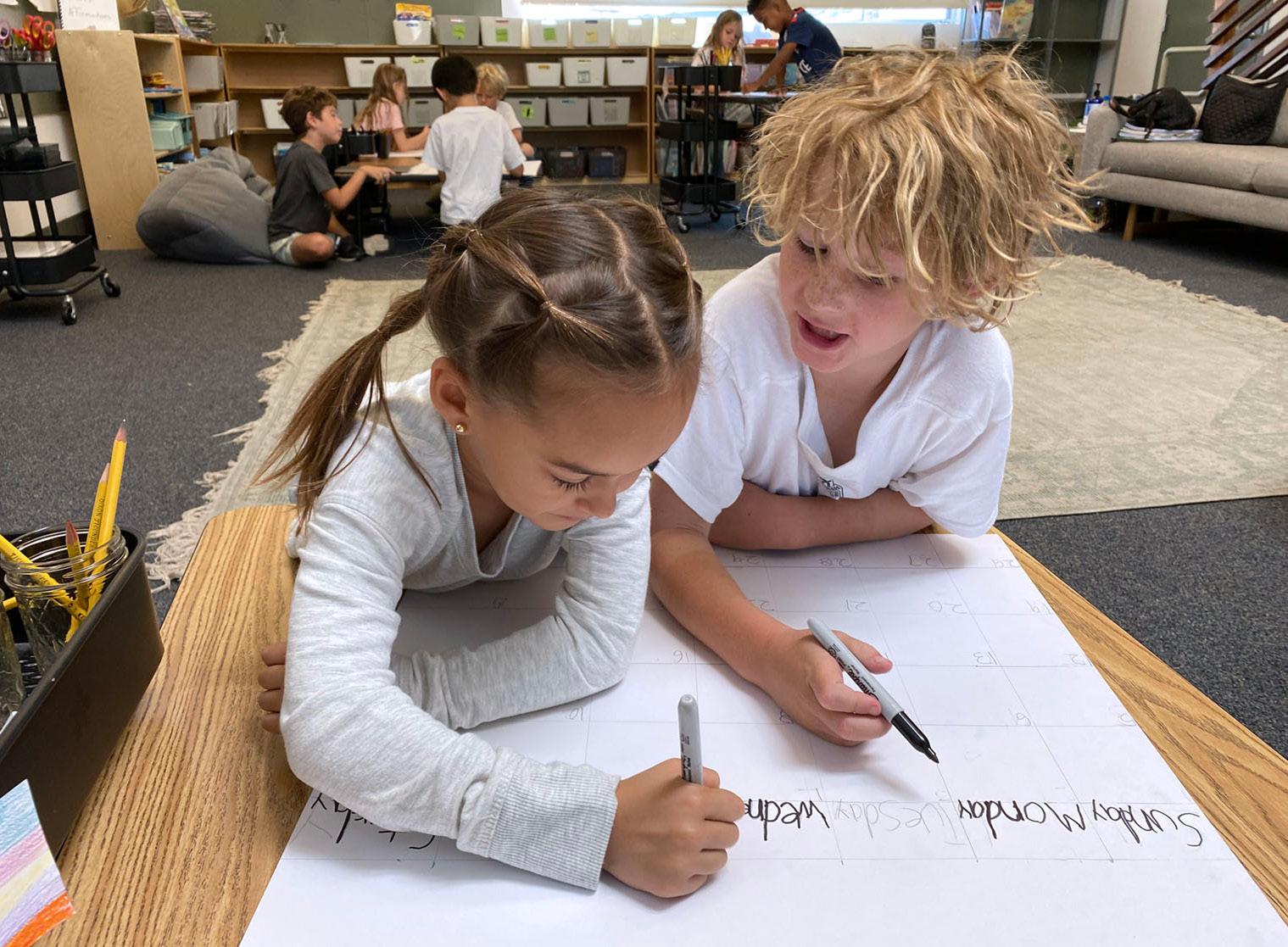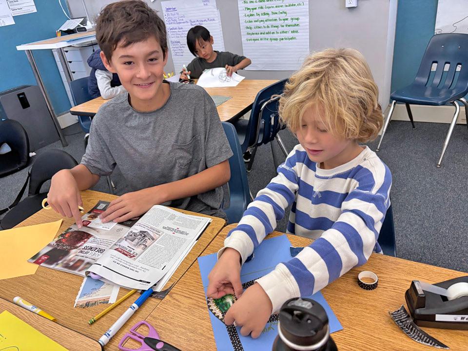 In North Oak students recently worked side by side with their Youngers Yellow buddy class to create huge banners of gratitude for different members of our community. The connection between students of different ages results in children growing in confidence and agency.