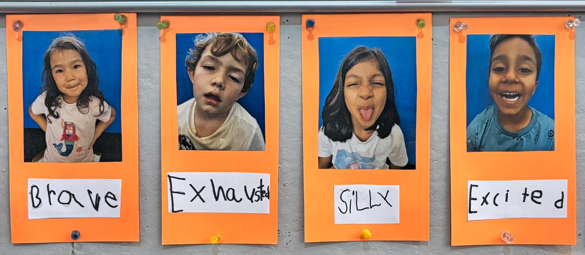 In the Youngers classes, students have been diving into an exploration of feelings as part of their social-emotional learning. Together, they’ve been learning to recognize, name, and understand the many emotions that can show up throughout the day—both big and small. The classes began by brainstorming as many feeling words as they could think of, creating a “feelings wall” full of vocabulary that goes far beyond just “happy,” “sad,” or “mad.” Students discovered words like “frustrated,” “excited,” “disappointed,” and “proud,” and talked about what each one means and how it might look or feel inside.