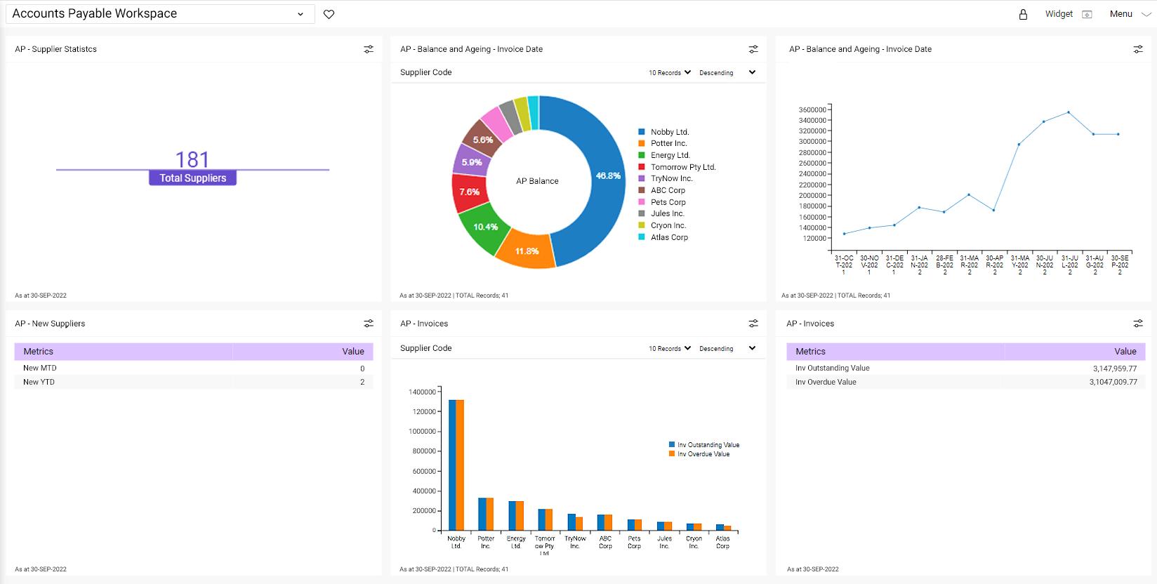 Designing your own KPI Workspaces canvas is simple, with a user-friendly layout that makes it easy to add the widgets you need and change them as your information requirements evolve. Quickly alter the layout of the widgets, select different chart types and more.