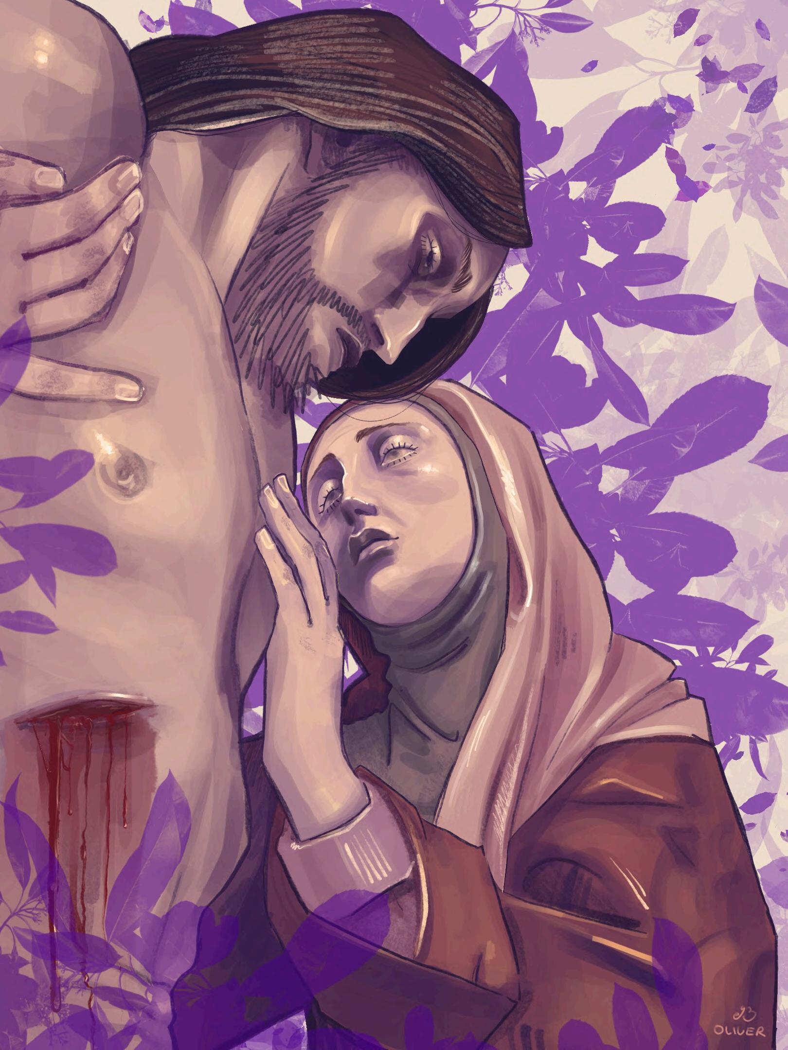 En este momento, Jesús es protagonista pasivo Su cuerpo muerto ya no tiene vida biológica, pero es el centro de atención de todos los presentes, y su cuerpo muerto es acogido entre los que verdaderamente lo aman y que se pueden contar con los dedos de la mano, María, su madre, María Magdalena, el discípulo amado, identificado con Juan, y José de Arimatea, que lo sostiene en sus brazos. Nicodemo, que lo había visitado de noche al principio del Evangelio de Juan (Jn 3,2), adora de rodillas ese cuerpo del Salvador, lo muestra como Señor a todos nosotros para que lo contemplemos y lo protege con su propio cuerpo para que empecemos a entender que este cuerpo corruptible no está llamado a la corrupción Nicodemo no toca el cuerpo de Jesús, pero sí hay que adorarlo y contemplarlo pues muy pronto se transformará en un cuerpo glorioso e incorruptible gracias a la resurrección que se avecina