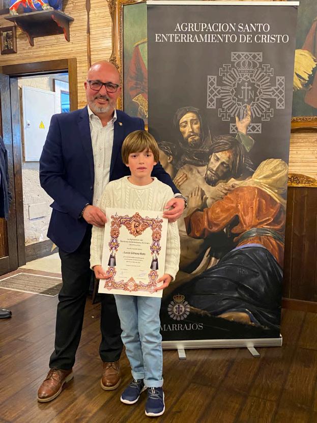 de la Familia Pallarés a la Agrupación del Santo Enterramiento de Cristo, y en recuerdo a Jacinto Pallarés tristemente fallecido este año, queremos dar el recuerdo de un capirote a MAXIMO PALLARES que desfiló por primera vez en 2022 junto a su padre. Además se hace entrega del documento que le acredita como Marrajo de patente