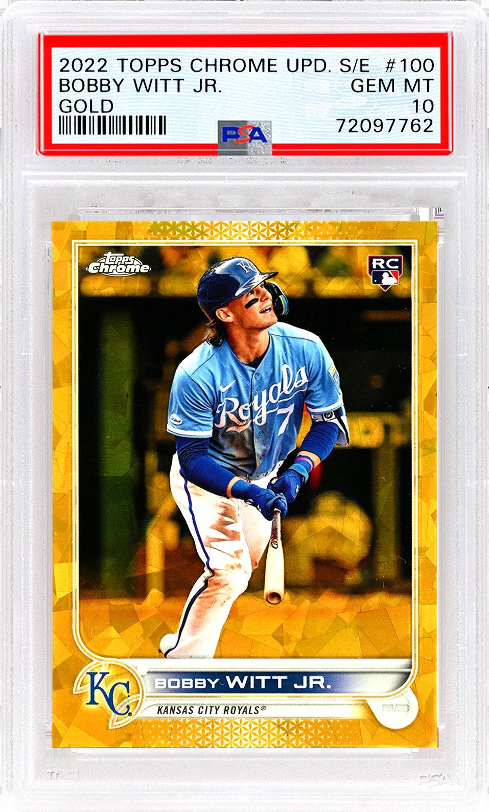 Trace the home run chase here to the shot heard ‘round the world of Bobby Witt Jr. Gold listings.