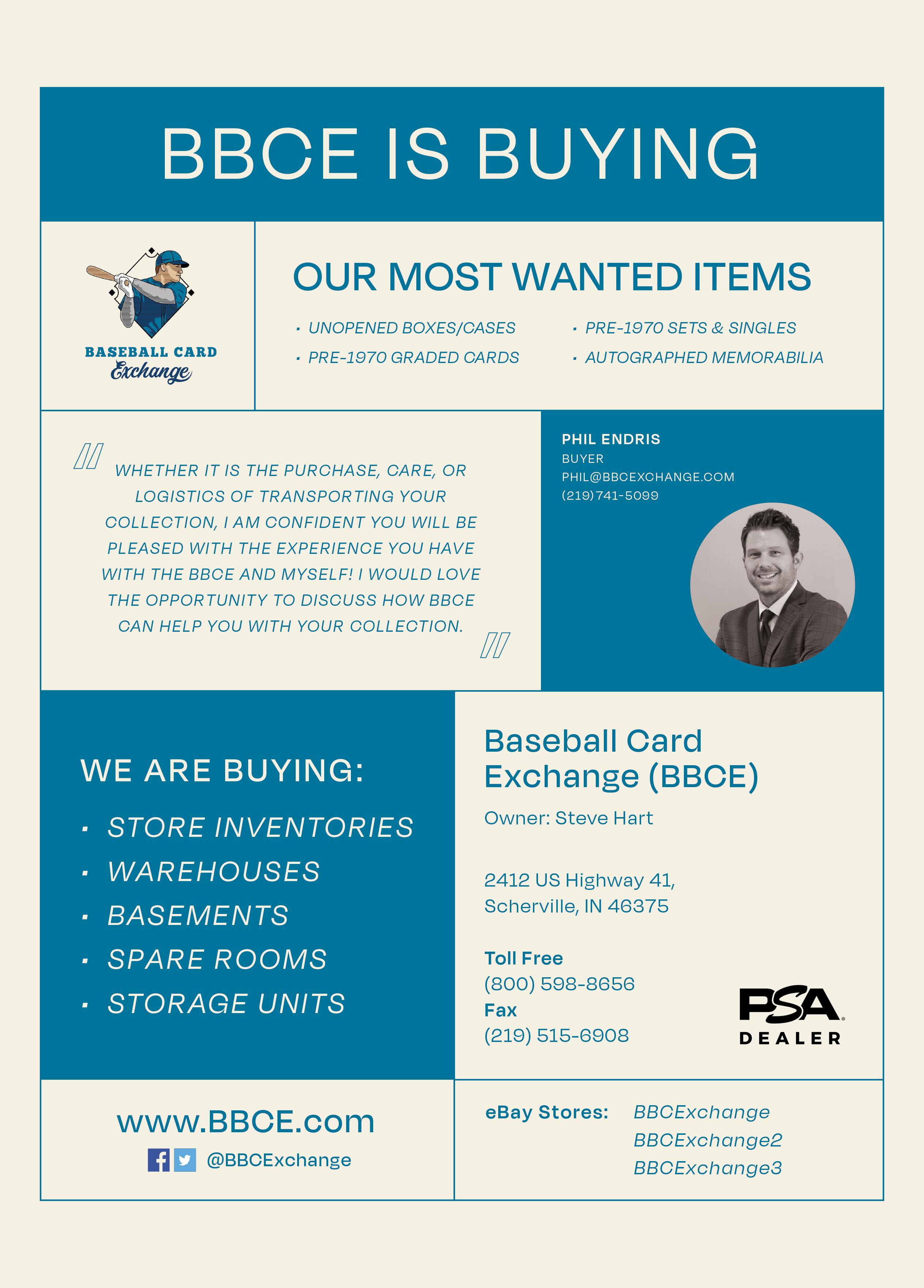 PSA BUYER'S GUIDE SPONSORED PO Box 430 • Chester, NJ 07930 | Phone: 908-226-9900 or 908-888-2555 Consign Now to our Next Blockbuster Auction! www.RobertEdwardAuctions.com GENEROUS CASH ADVANCES AVAILABLE The Most Trusted Name. The Most Iconic Items. The Hobby’s Best Results.