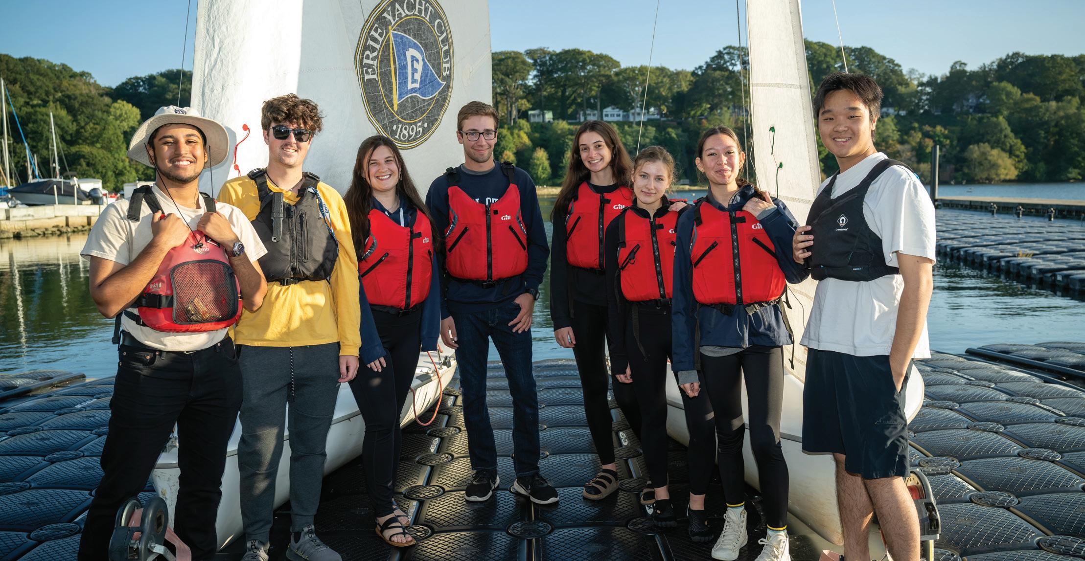 Inducted into Penn State Behrend’s 2023 Athletics Hall of Fame (pictured here with Brian Streeter, senior director of athletics) were, in alphabetical order, Clay Altemose ’13, men’s swimming; Matt Bittner ’13, baseball; Russ Conley ’13, men’s basketball; Jake Gamble ’13, men’s soccer; Dennis Grace ’73, men’s soccer (inducted posthumously); Victoria Harwood ’13, women’s track and field and cross-country; Ryan Jacobs ’13, baseball; Ali Khan ’13, men’s water polo; Ryan Kragnes ’13, baseball; and Valerie (Wagner) Haney ’13, women’s soccer.
