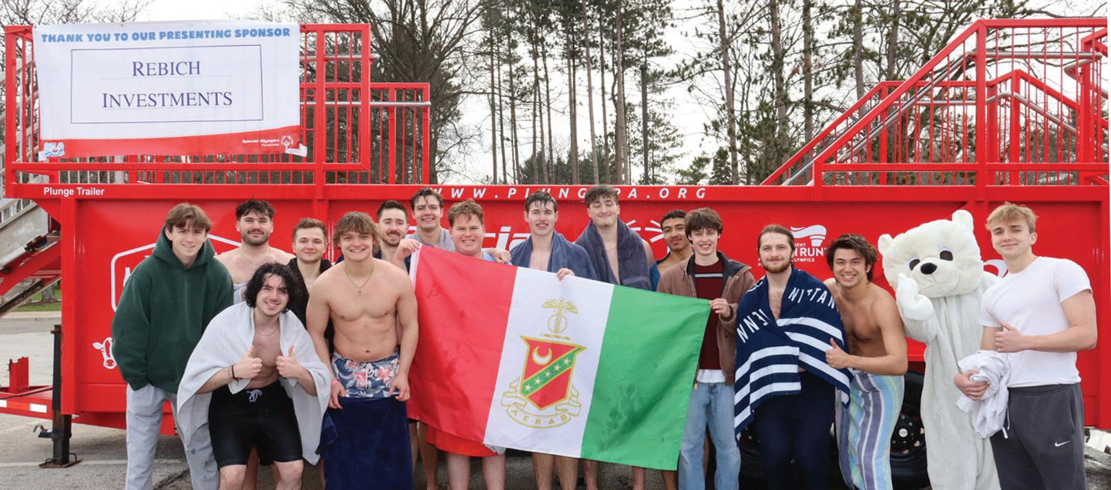 FREEZING FOR A REASON: In April, the Penn State Behrend community raised more than $10,000 for Pennsylvania Special Olympics by jumping into the chilly waters of the Bear Force One mobile pool in the Reed Union Building parking lot. Even Chancellor Ralph Ford took the plunge, twice. Pictured at left are members of Kappa Sigma fraternity, which raised the most funds for the event: $2,900! Runner up: Alpha Sigma Alpha, which raised $1,237.
