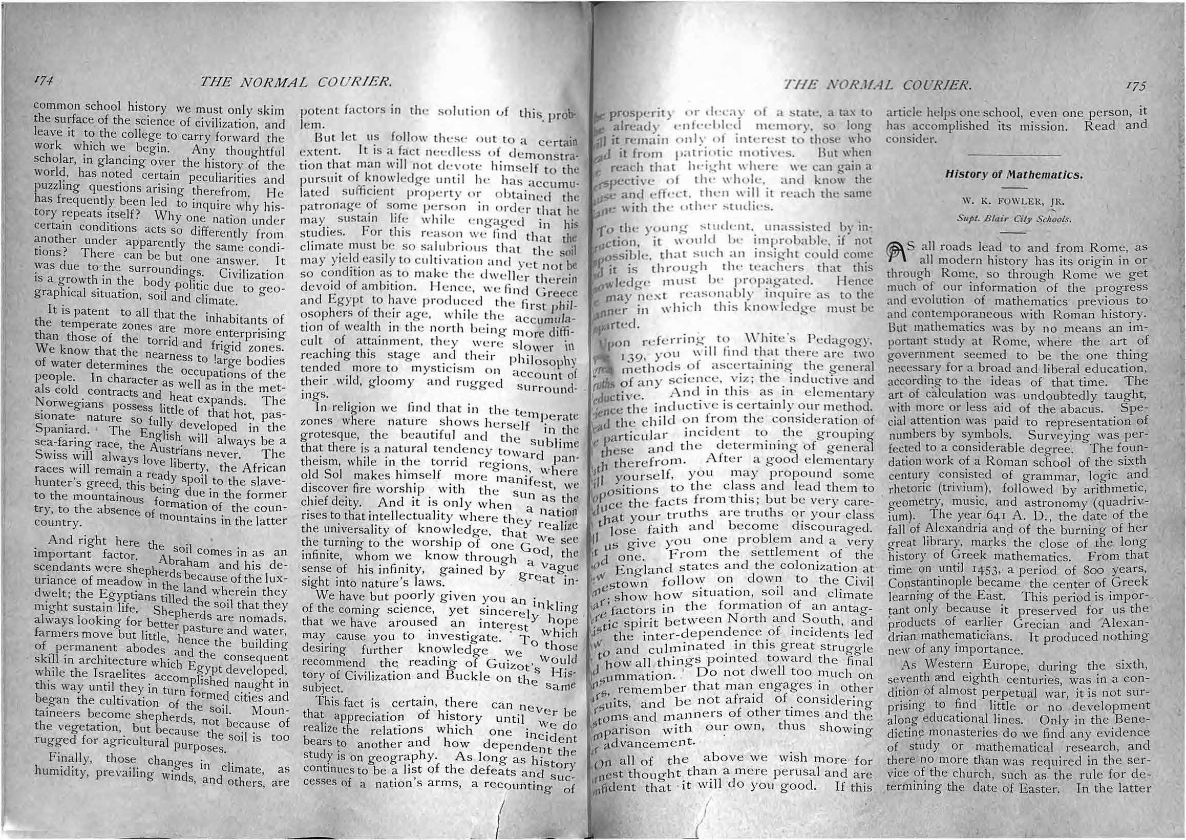 Stud y ing the struggle of th e human race ha s alw ays pro ve d int er es tin g and beneficial we le at:n it fr om r ea ding or from trav el and obser va ti on. Only th e man·of me ane can afford to ga in th is int er es ting kno wledg e by travel, but we ca n all b eco me ac q uainted with the histo ry of the pa st.