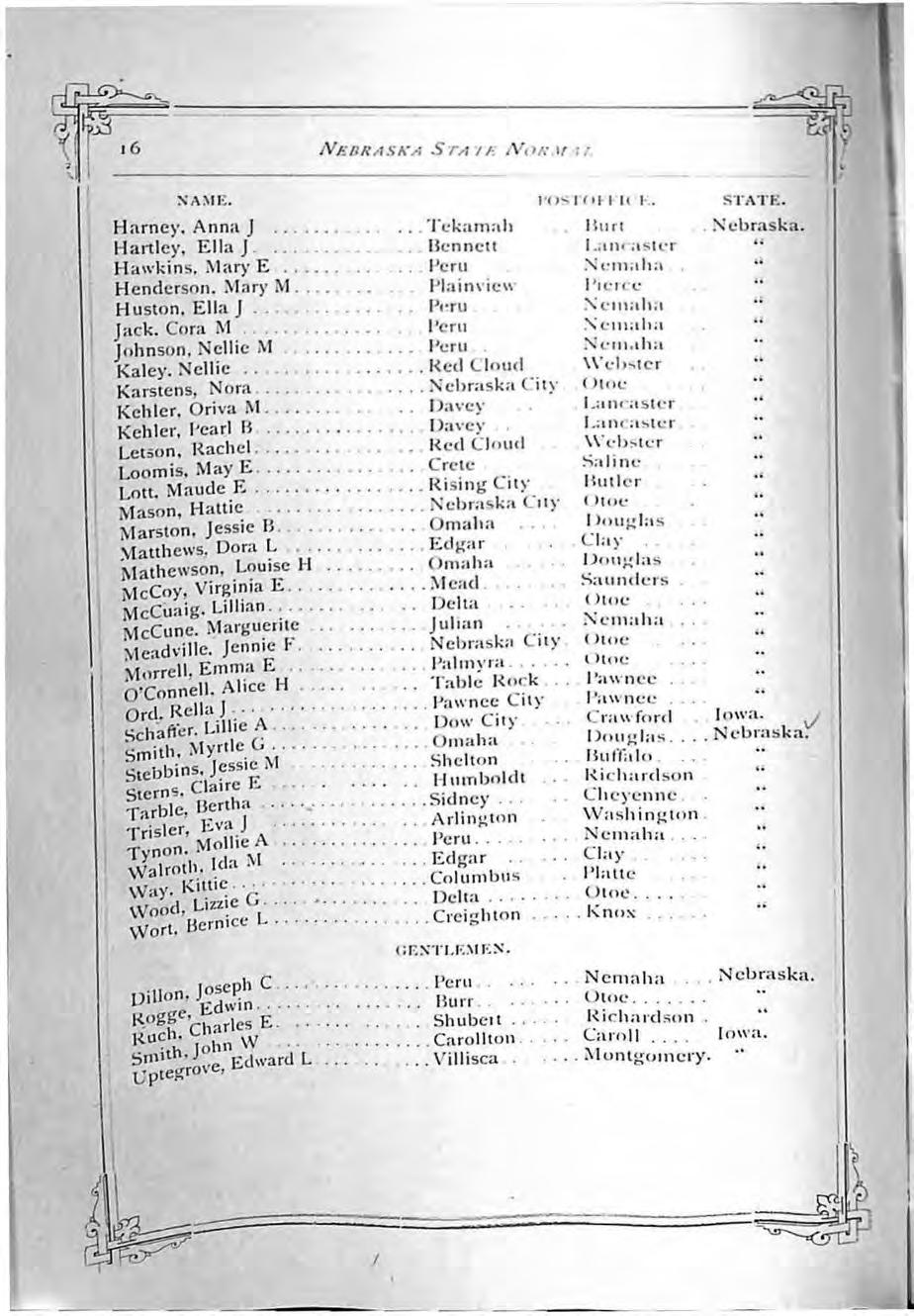 Louis A. Ba tes, dri~f!gis l Sp rin g fi e ld Nebrask a. ( Elsie C. DeCo u ( Mr s. .. C. Th o rn ) ... O maha Ne bra s ka . Ida M. De nn ison./ . De nv er C ol o ra do / 1 Les l ie Lew is, / ... . . . . . . . . . ... . ... .. .. San Di eg o . ... . Ca li forn ia.
