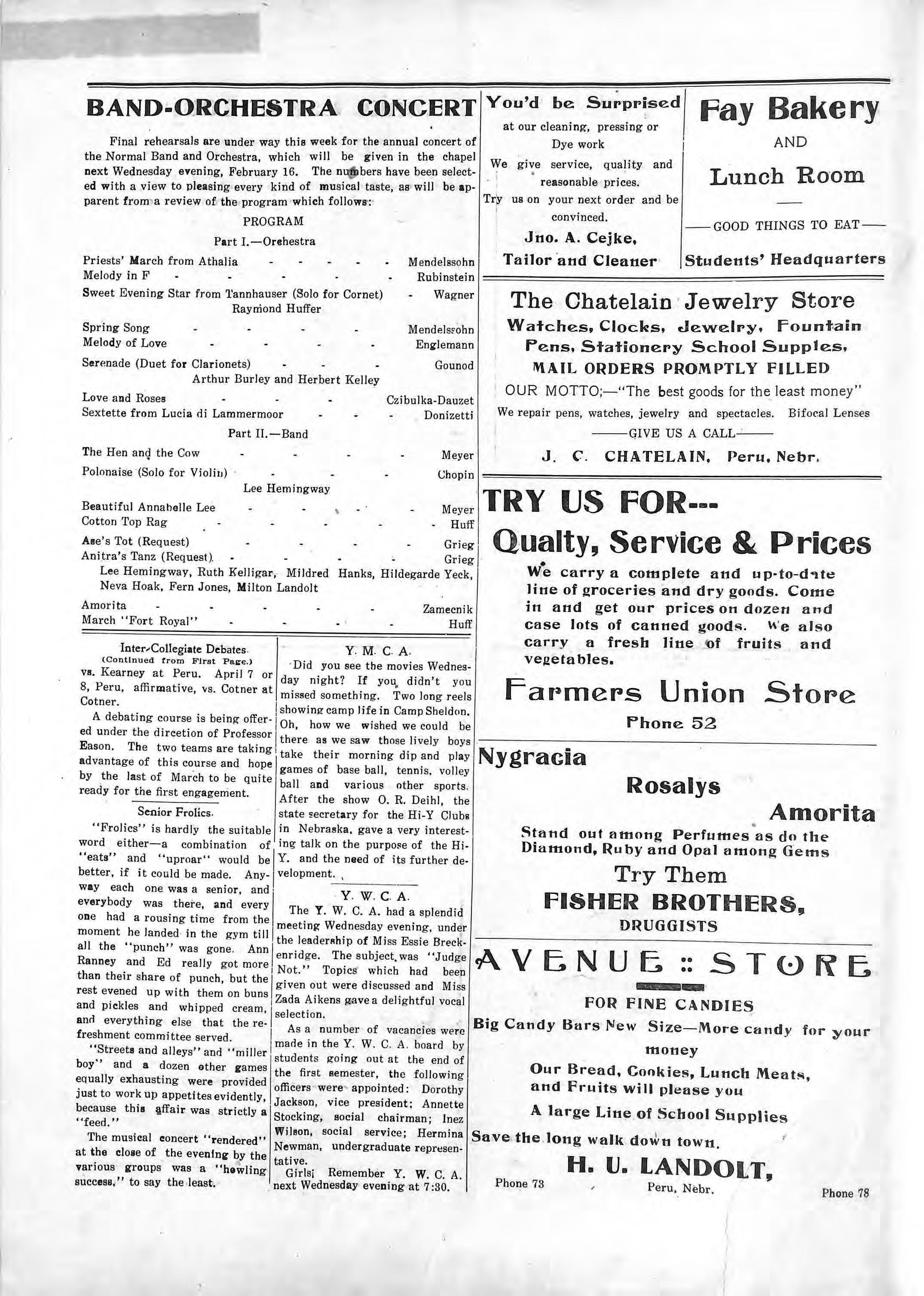 Entered at the Postoffice at P eru, Nebra ska as second -class matter.