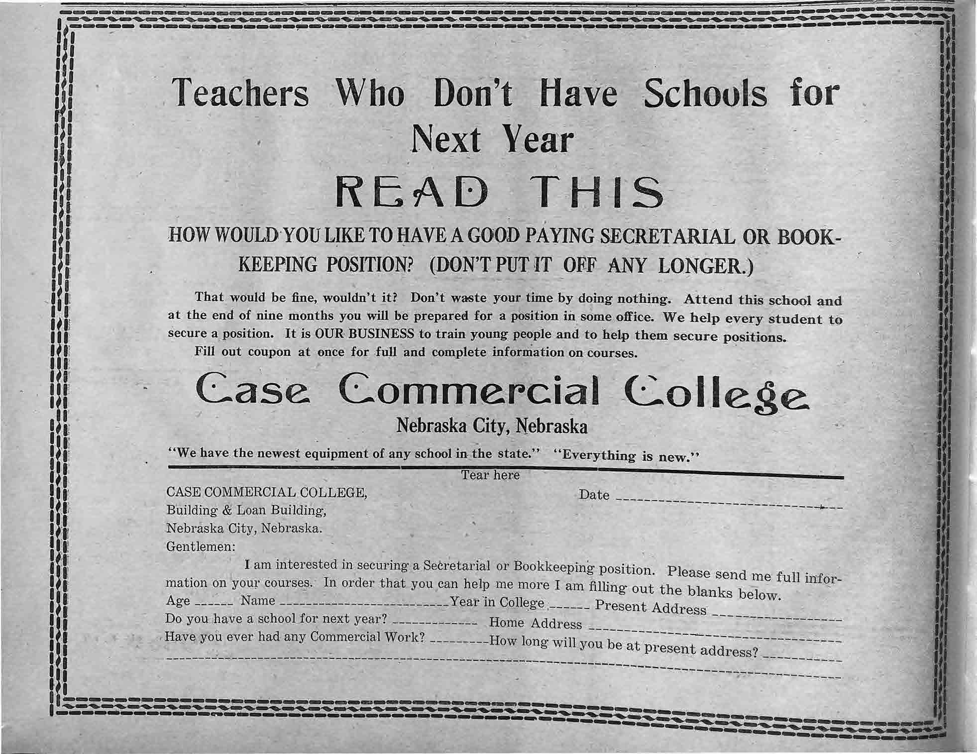 Irma Casey h in the accep ted a posit ion . conune1·c 1al deuartm t f th hi.gh school at B:umboldt ho e Miss C asey recently w as , e rask a. t he Registrar at p secretary to eru