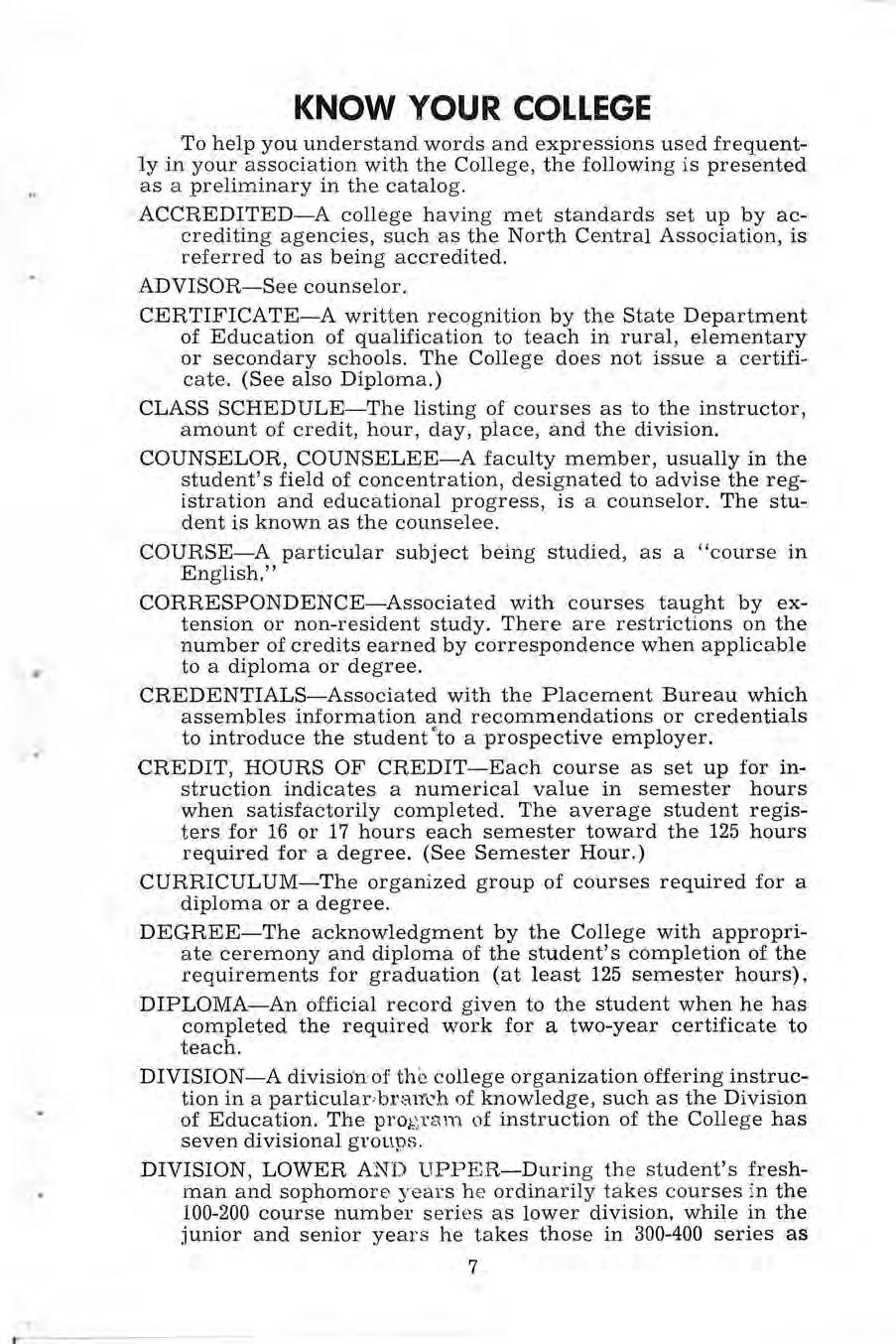 To help you understand words a nd expressions us e d frequently in your association with the College, the followin g i s presented as a prelimin a ry in th e catalo g .