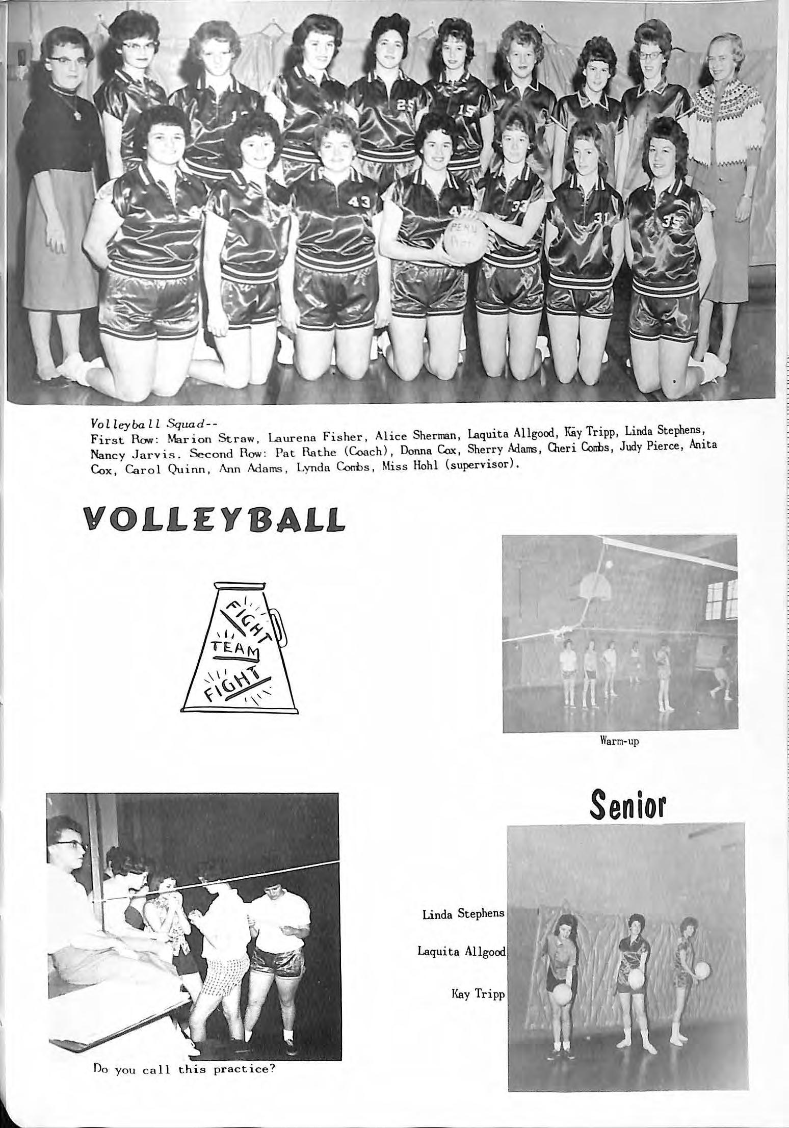 First Row: Marion Straw, Laure na Fisher, Alice Sherrran, Laquita Allgood, Kay Tripp, Linda Stephens, Nancy Jarvi s Second Row: Pat Rathe (Coach), Donna Cox, Sherry Adams, Oieri C-onbs, Judy Pierce, Anita Cox, C'.arol Quinn, Ann Adams, Lynda C:OOOs, Miss Hohl (supervisor)
