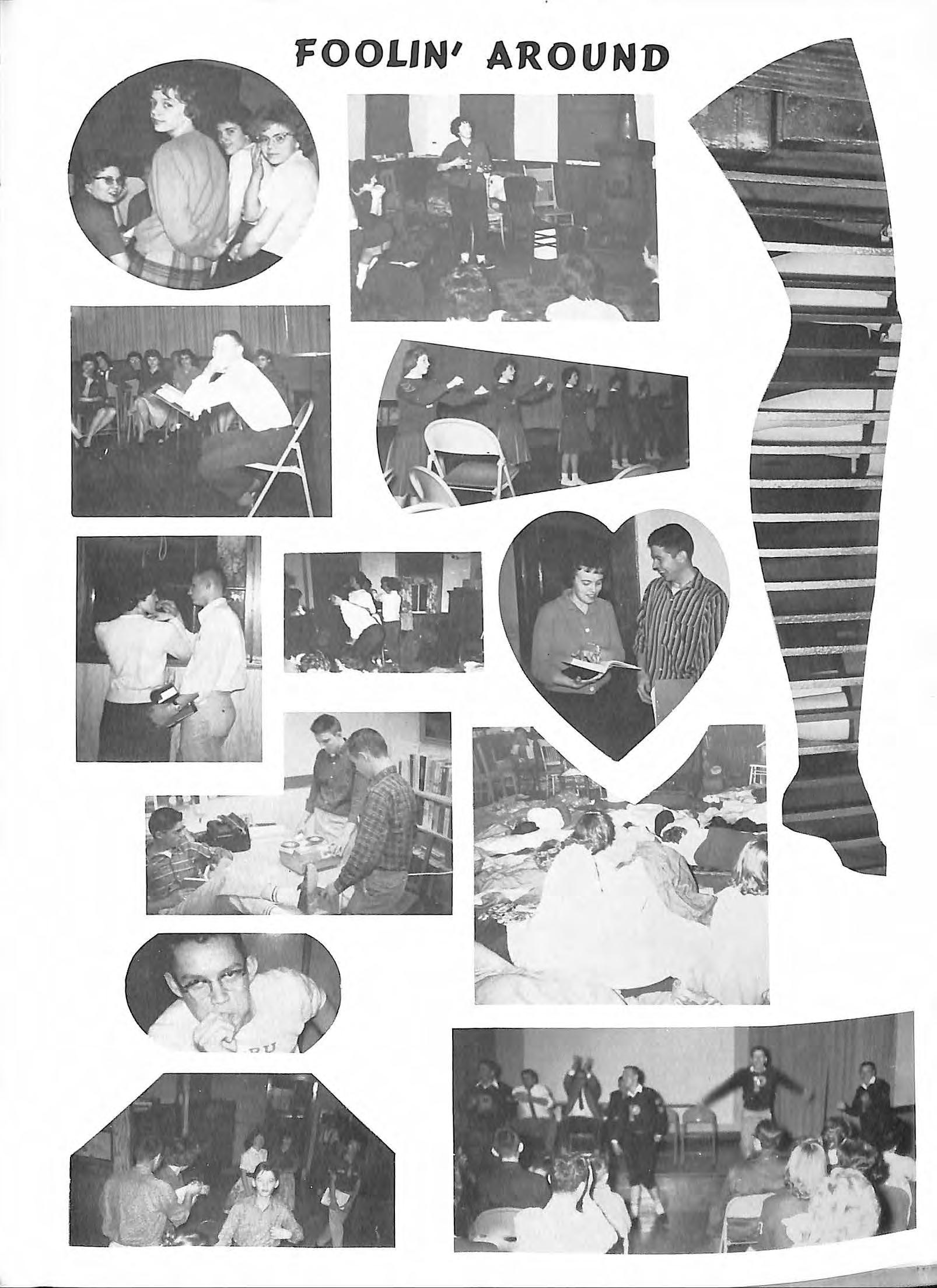 Second Row: Tom ~lajors, sports co-editor, Richard Rains, Virginis Cockerham, classes co-editor, Oi.arlotte Iliff, sports co-editor, ilarilyn Larson, Linda Morrissy, classes co-editor, Barbara Peck, Third Row: Paul Heuer, co-editor, Dave Gomon, co-editor.