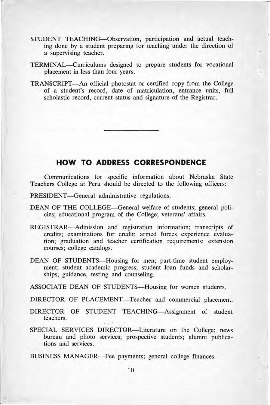 Communications for specific information about Nebraska State Teachers College at Peru should be directed to the following officers:
