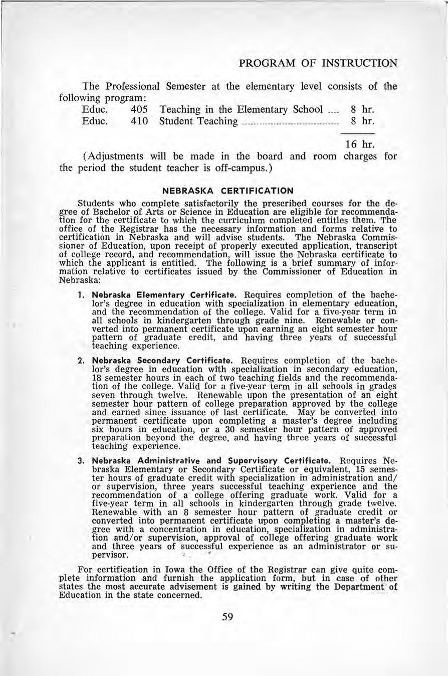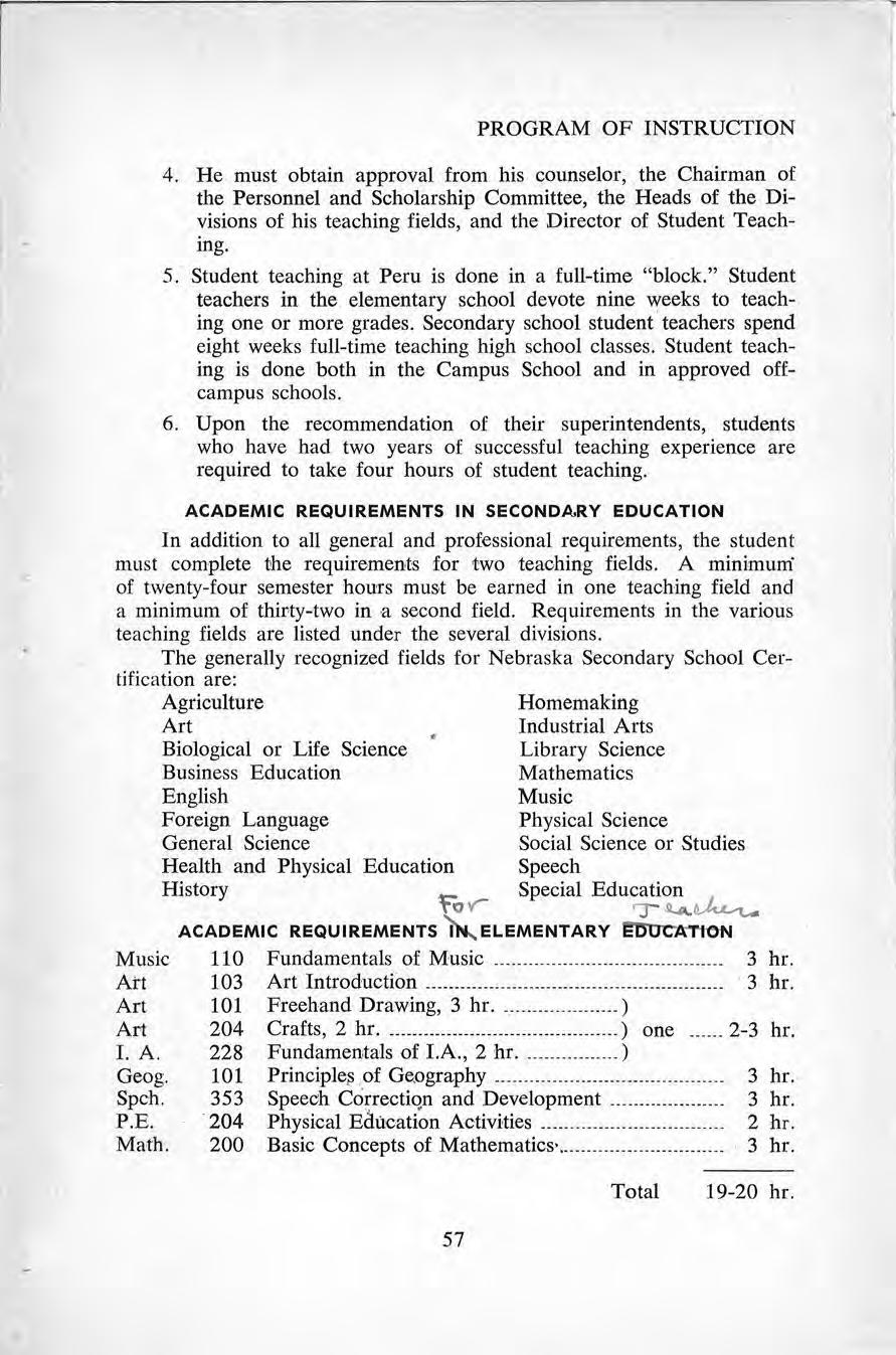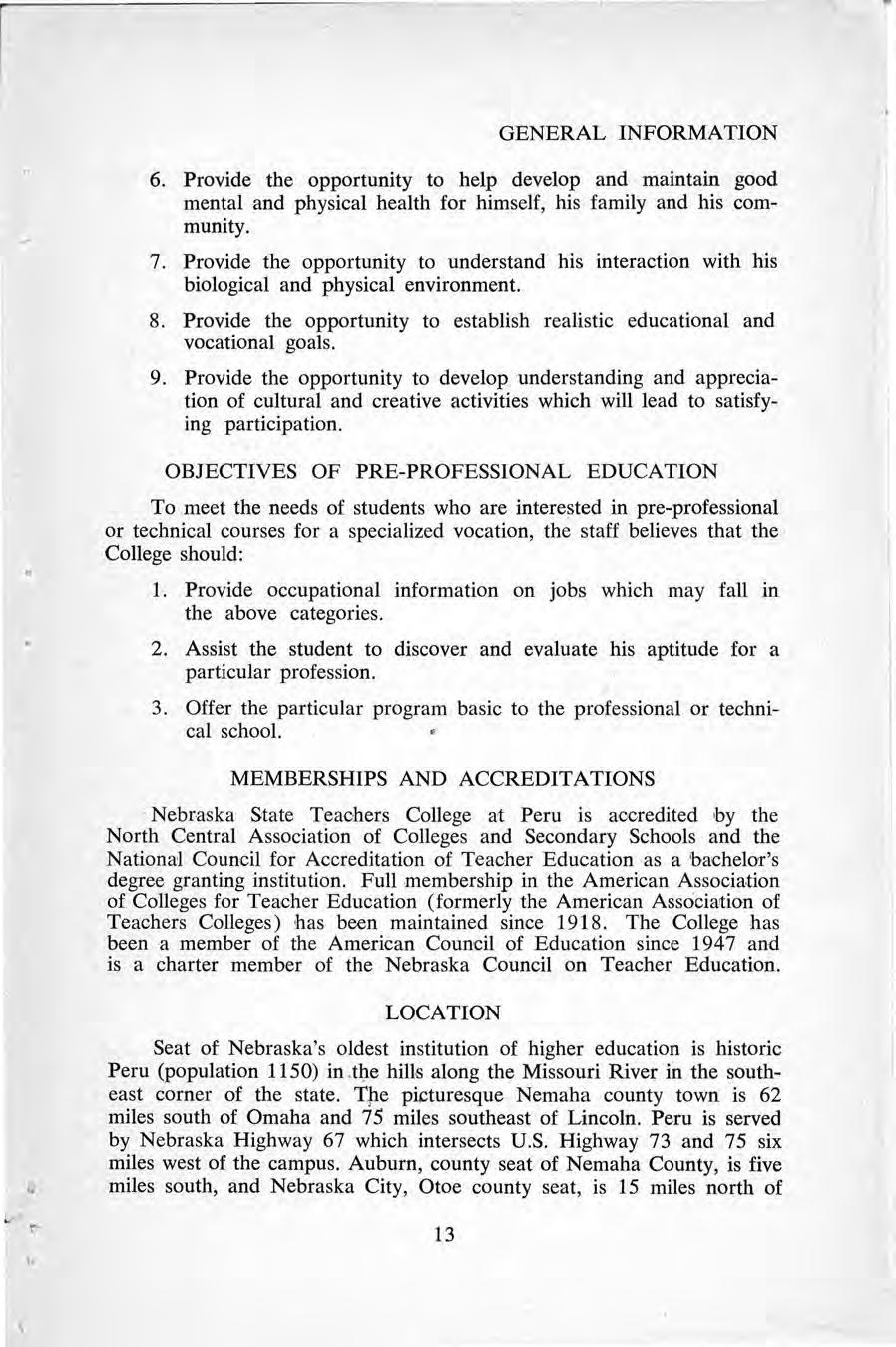 · Nebraska State T~achers College at Peru is accredited by the North Central Association of Colleges and Secondary Schools and the National Council for Accreditation of Teacher Education as a 'bachelor's degree granting institution. Full membership in the American Association of Colleges for Teacher Education (formerly the American Association of Teachers Colleges) has been maintained since 1918. The College has been a member of the American Council of Education since 194 7 and is a charter member of the Nebraska Council on Teacher Education.