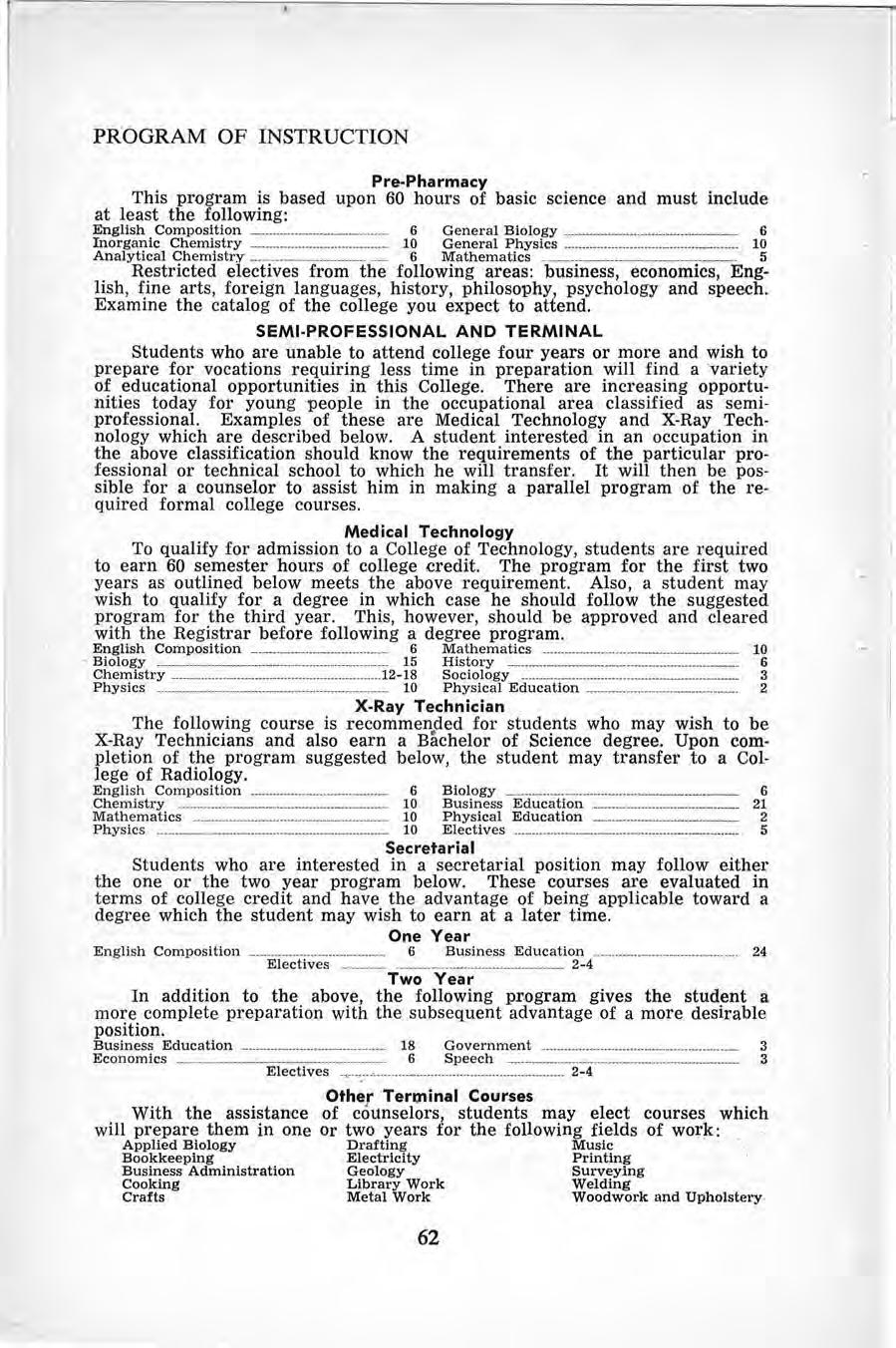 To ,meet the needs of students who are interested in pre-professional or technical courses for a specialized vocation, the staff believes that the College should: