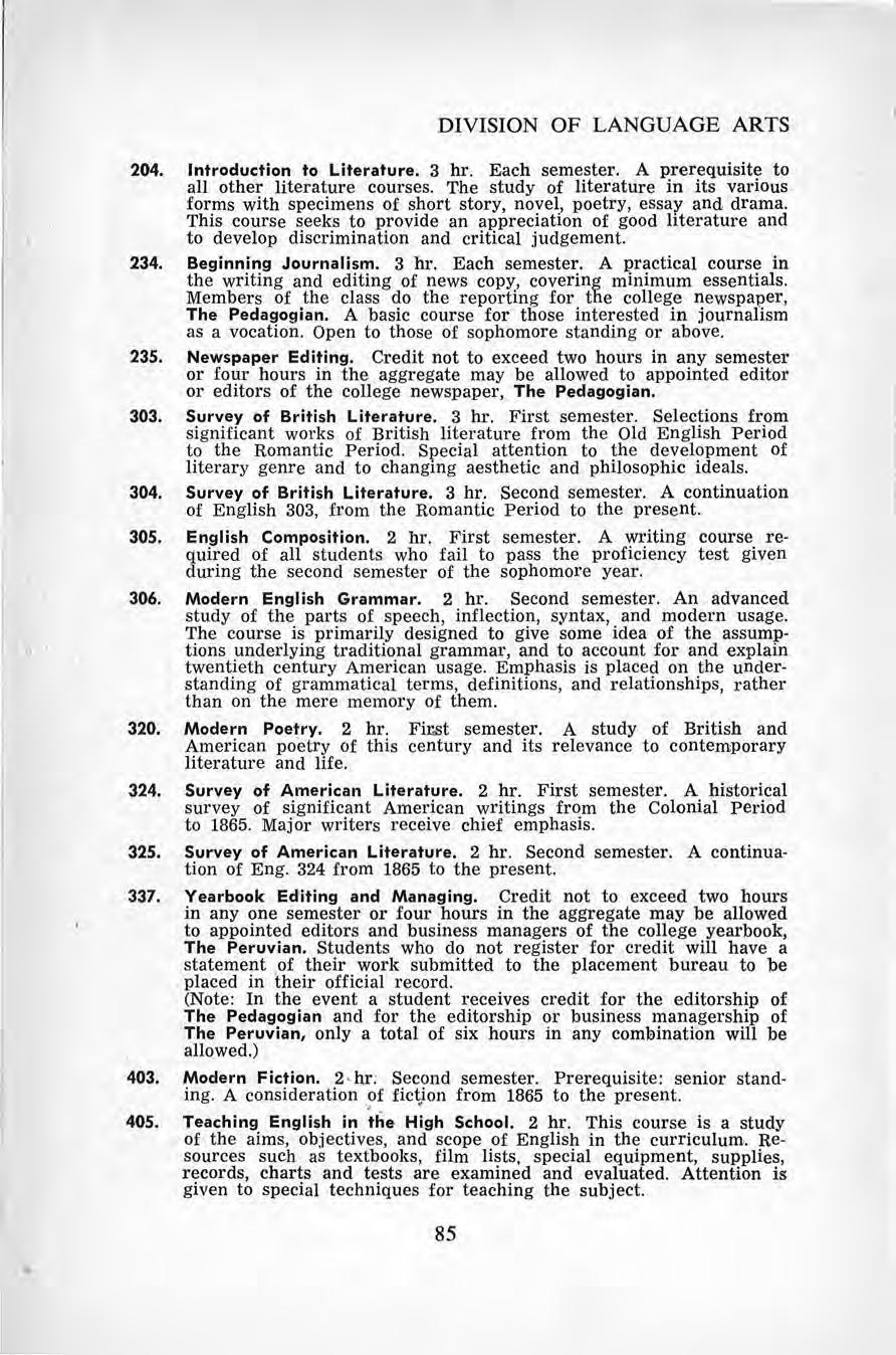 DIVISION, LOWER AND UPPER-Courses of instruction classified according to number, 100-200 (lower) and 300-400 (upper) . A specific number of hours in upper division courses is required for a degree.