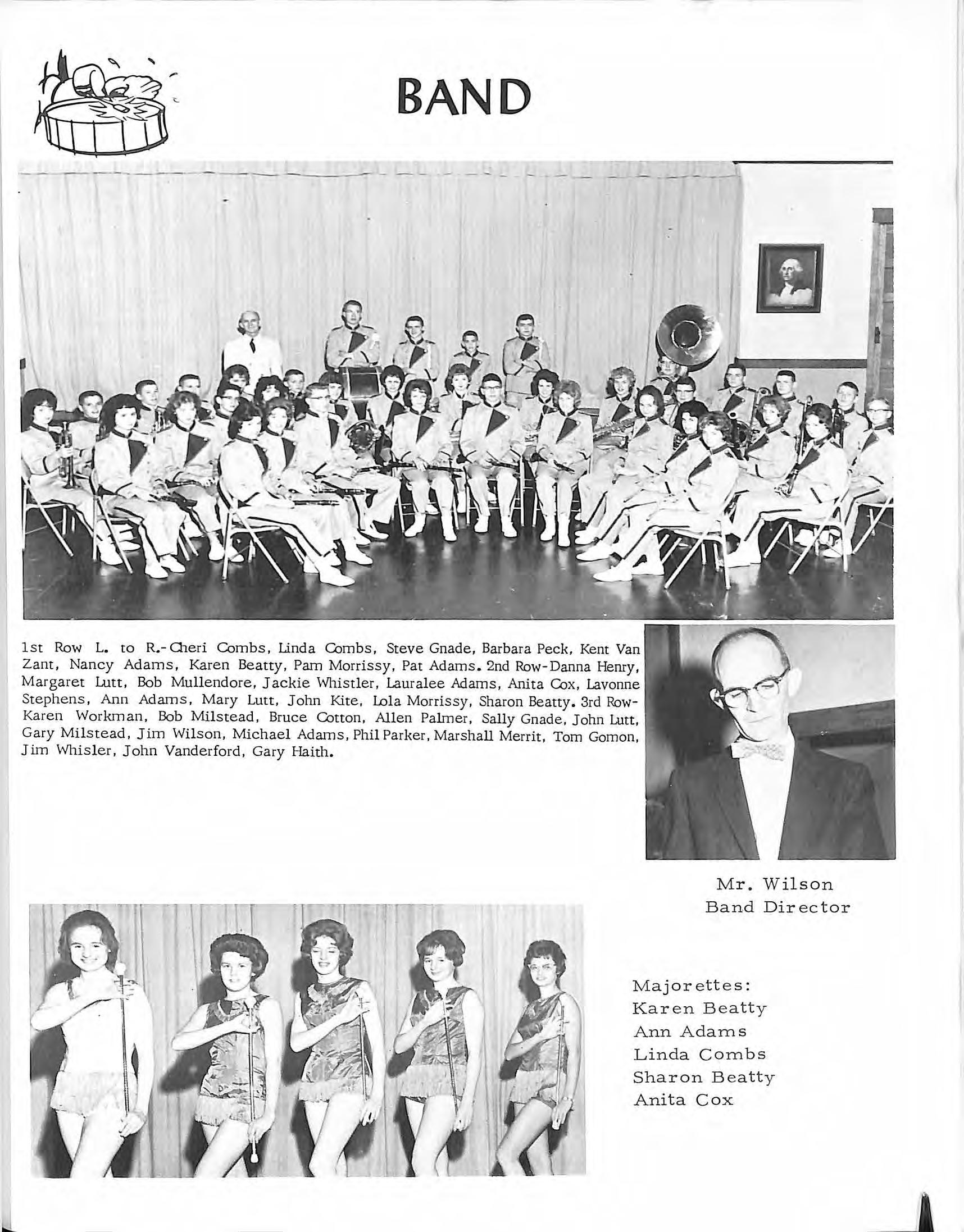 1st Row L. to R.- Oieri Combs, Linda Comb s , Steve Gnade , Barbara Peck, Kent Van Zant, Nancy Adams, Karen Beat ty, Pam Morri ssy, Pat Adams 2nd Row - Danna Henry , Margaret Lutt , Bob Mullendo re, Jackie Whistl er, Laural ee Adams, Anita Cox, Lavonne Stephens, Ann Adams , Mary Lutt , John Kite, Lol a Morrissy, Sharon Beatty 3rd RowKaren Workman, Bob Mil s t ead, Bruce Cotton, Allen Palmer, Sall y Gnade , John wtt , Gary M ilstead, Jim Wilson, Michael Adams, Phil Parker, Marshall Merri t, Tom Gomon , Jim Whis l er, John Vanderford, Gar y Haith