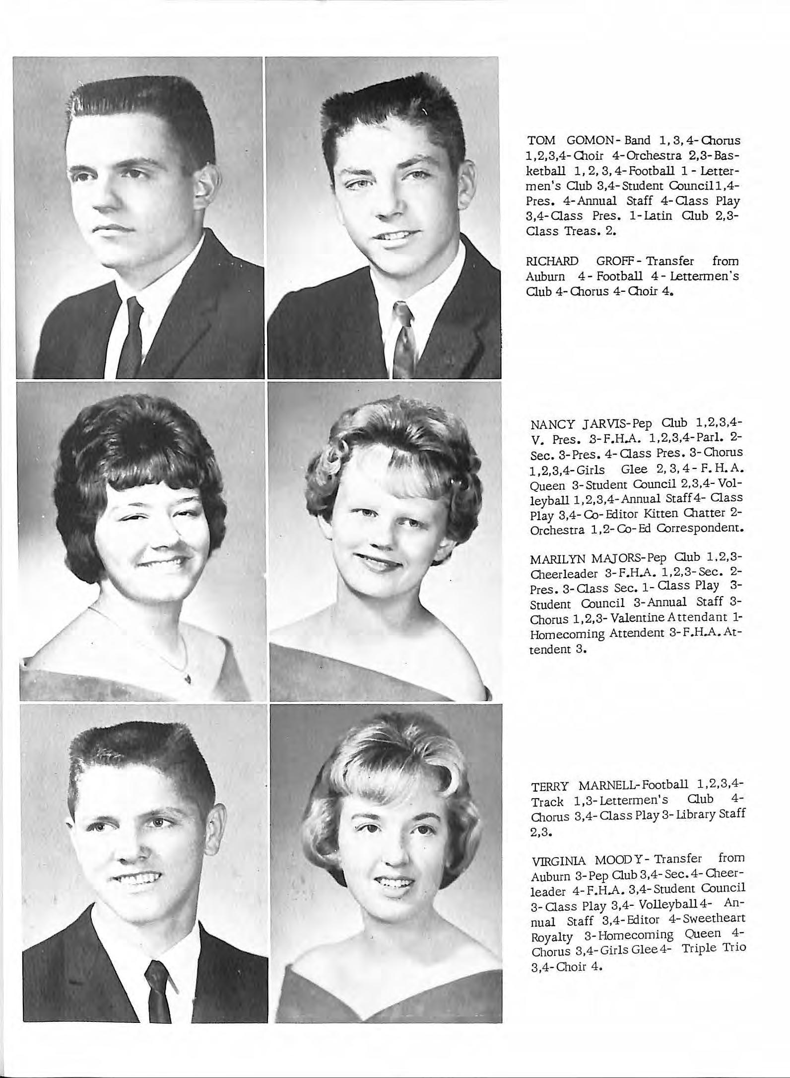 MARILYN MAJORS-Pep Club 1.2, 3Cheerl eader 3-F H.A 1,2,3-Sec 2Pres 3- Class Sec. 1 - Class Play 3Student Council 3- Annual Staff 3Chorus 1,2,3- Valentine Attendant 1Homecoming Attendent 3- F.H.A. Attendent 3.