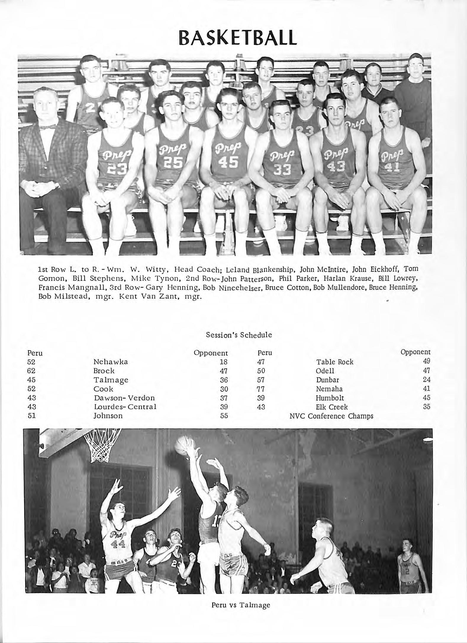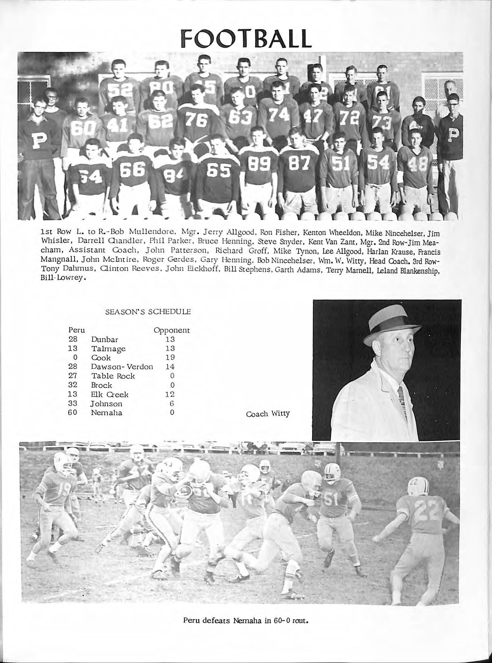1st Row L co R. -Bob Mullendore , M gr Jerry Allgood, Ron Fisher, Kenton Wheeldon, Mike Nincehelser, J im Whisl er, Darrell 0 1andler , Phil Parker, Bruce Henning, Steve Snyder, Kem Van Zant, Mgr. 2nd Row-Jim Meacham, Assistant Coach, John Patterson , Richard Groff, Mike Tynon, Lee Allgood, Harl an Krause, Francis Mangnall, Jolm McIntire, Roger Gerdes , Gary Henning , &>b Nincehelser, Wm W Witty, Head Coach 3rd RowTony Dahm us , Ointon Reeves, John Eickhoff, Bill Stephens, Garth Adams , Terry Marnell, Lel and Blankenship, Bill ·Lowr ey