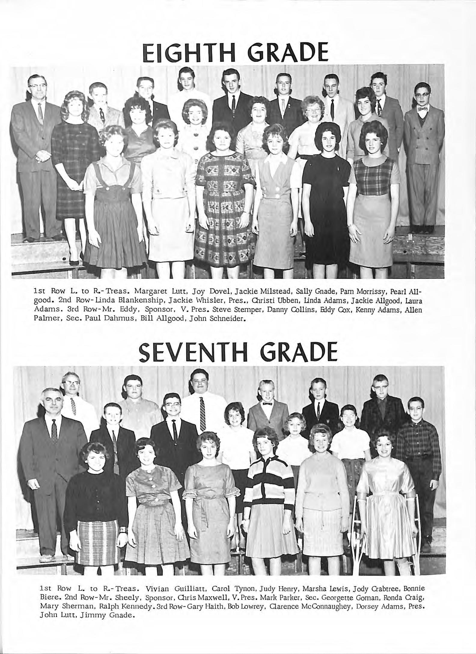 1st Row L to R. - 'lreas Margaret Lutt, Joy Dovel, Jackie Mil stead, Sally Gnade, Pam Morrissy, Pearl Allgood 2nd Row - Linda Bl ankenship, Jackie \vhis l er, Pres , Olristi Ubben, Linda Adams, Jackie Allgood, Laura Adams. 3rd Row-Mr. Eddy, Sponsor, V Pres Steve Stemper, Danny Collins, Eddy Cox, Kenny Adams, Allen Palmer, Sec. Paul Dahmus , Bill Allgood, John Schneider.