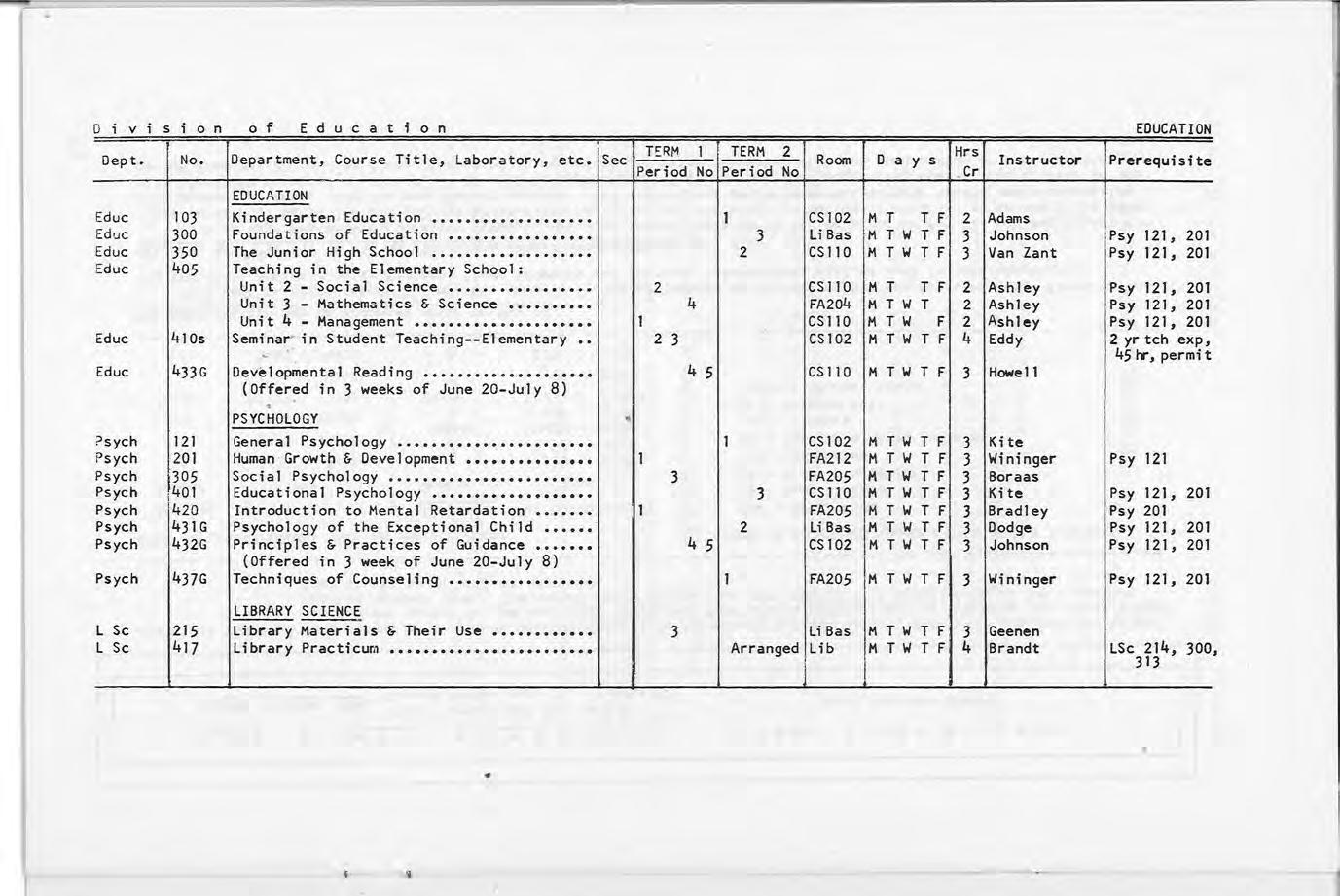 Courses--The course offerings are essentially the same as those given in the regular academic year. Many courses are repeated each summer while others for which the demand is small, are alternated and made available every second or third summer.
