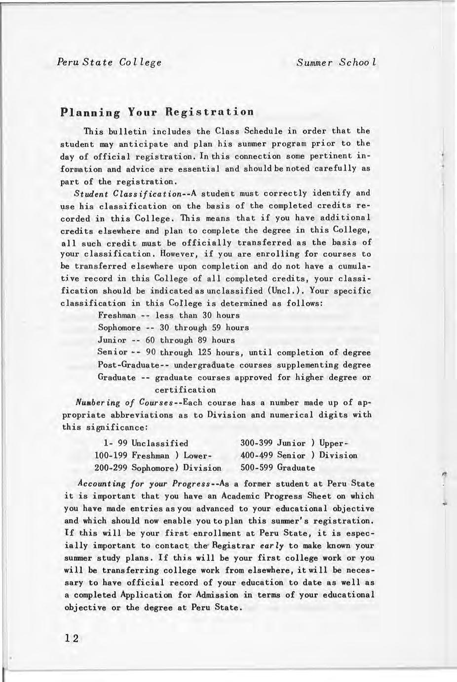 Accounting for your Progress--As a former student at Peru State it is important that you have an Academic Progress Sheet on which you have made entries as you advanced to your educational objective and which should now enable you to plan this sunmer' s registration. If this will be your first enrollment at Peru State, it is especially important to contact. the• Registrar early to make known your su111Der study plans. If this will he your first college work or you will he transferring college work from elsewhere, it will he necessary to have official record of your education to date as well as a completed Application for Admission in terms of your educational objective or the degree at Peru State.