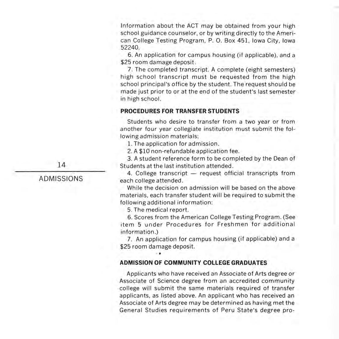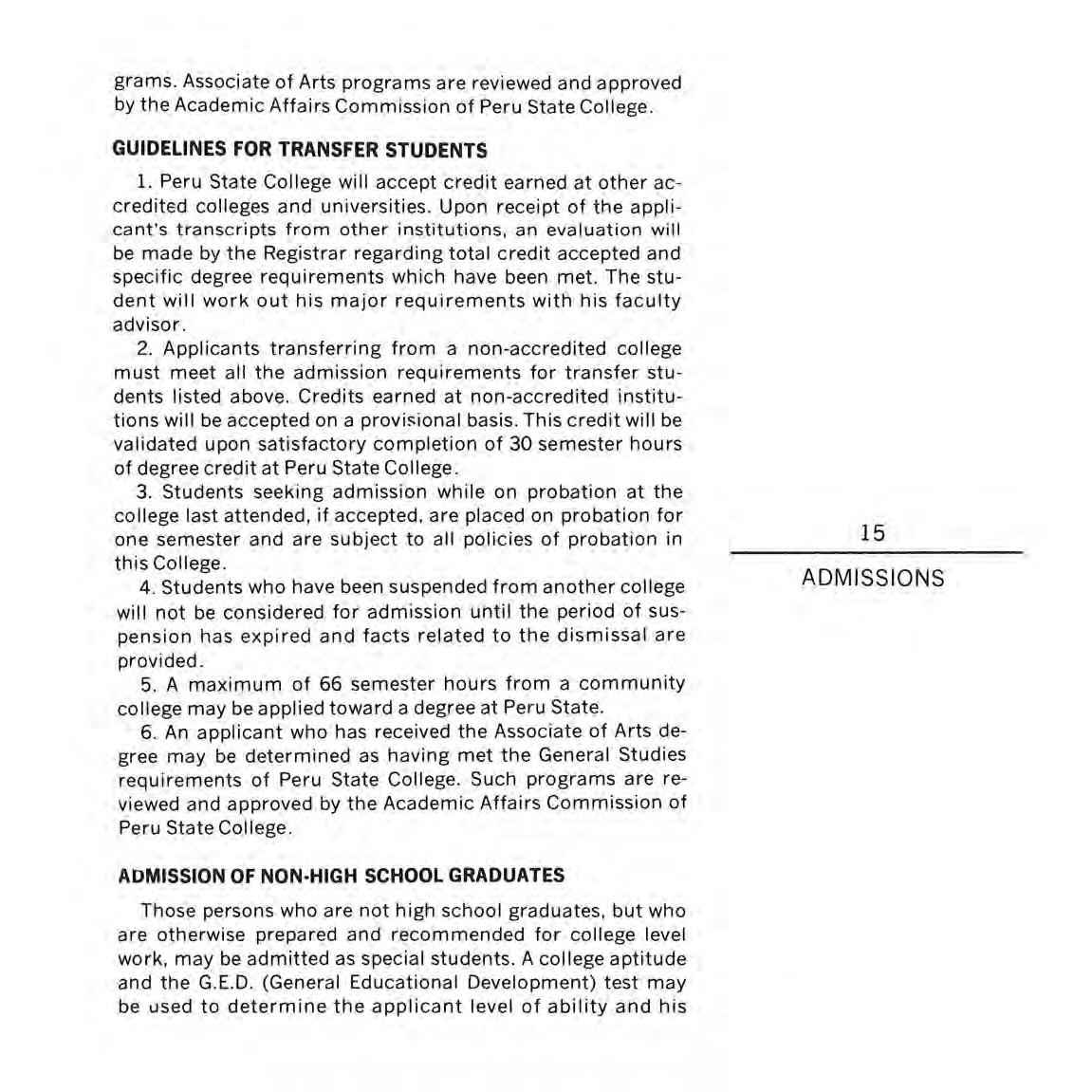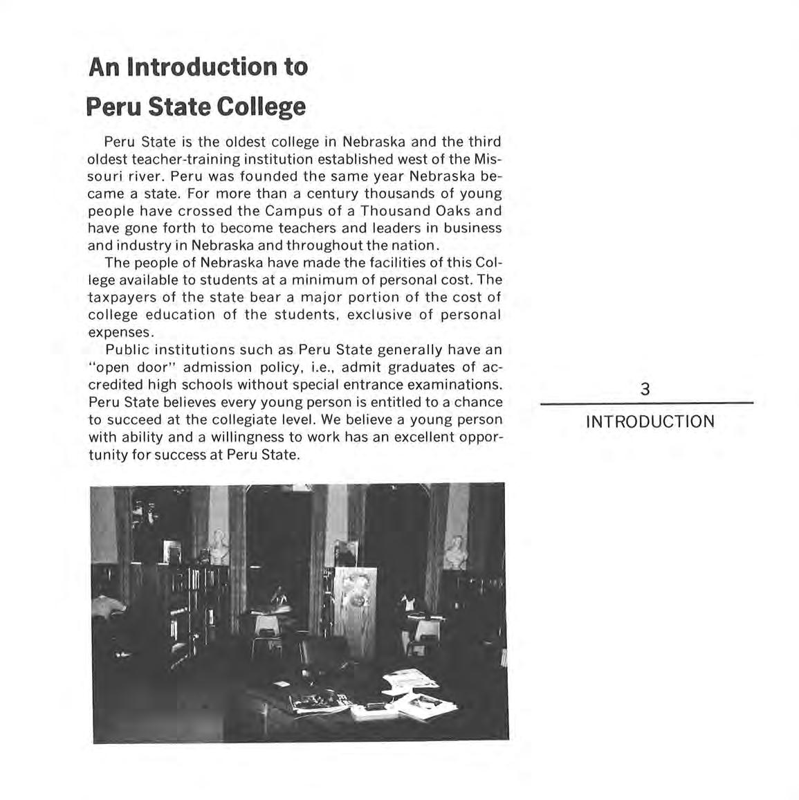 Public institutions such as Peru State generally have an "open door" admission policy, i.e ., admit graduates of accredited high schools without special entrance examinations.