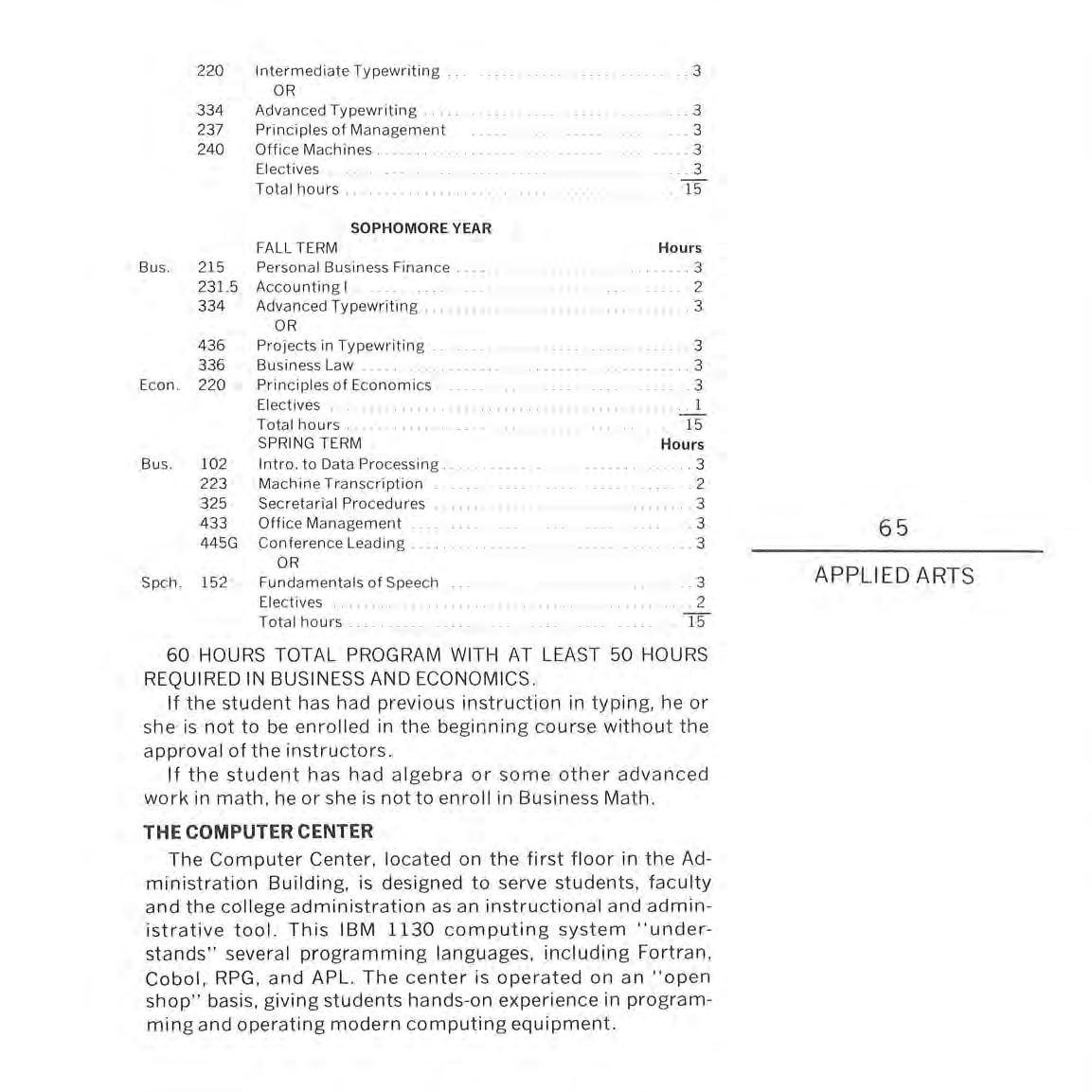 STUDENT CENTER. This facility was occupied in Janu ary, 1961, with more dining space and services added in the fall of 1965 The building houses dining rooms, meeting rooms, a lounge , faculty room, game room, bookstore, and snack bar .