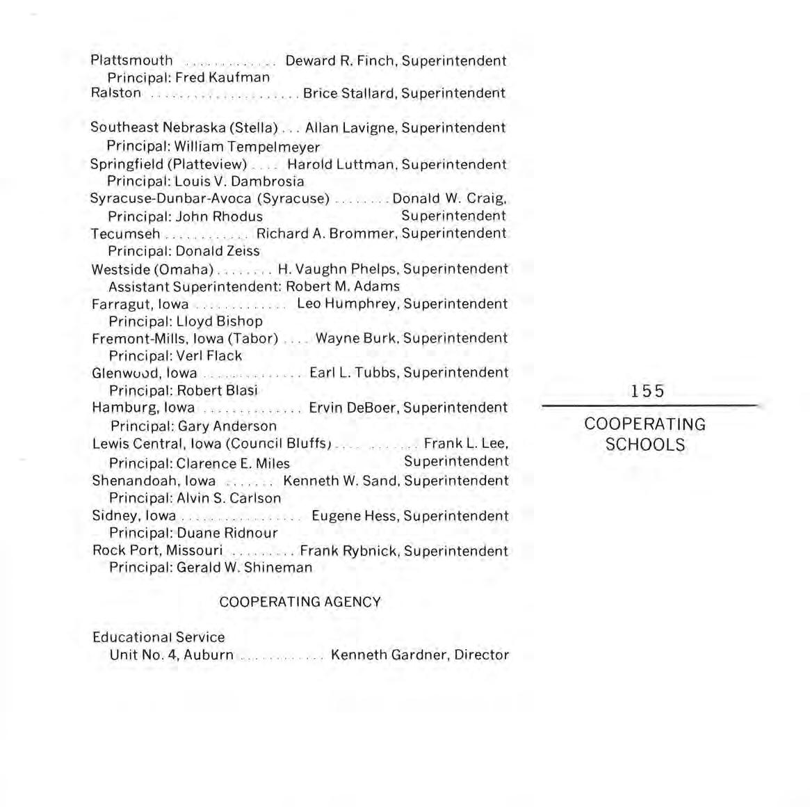 Hamburg, Iowa .. ........ Ervin DeBoer, Superintendent
