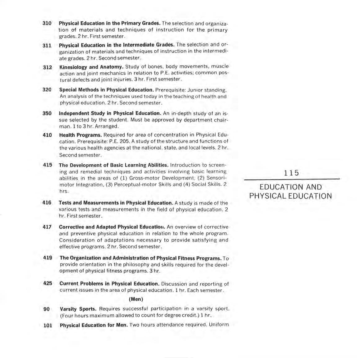 GYMNASIUM. The gymnasium evolved from remodeling of the original College Chapel building in 1921, through reconstruction projects in 1928 and 1949, to the present facility which houses two basketball floors, gymnastics and wrestling rooms, tile swimming pool, locker and shower rooms for men and women, as well as physical education offices and c lassrooms.