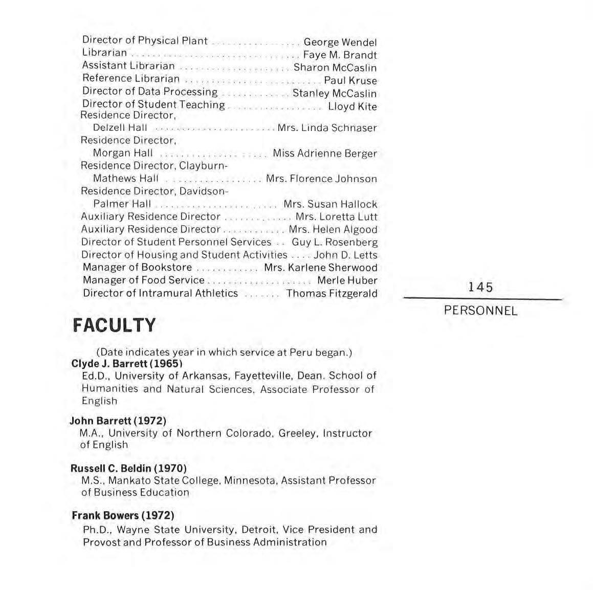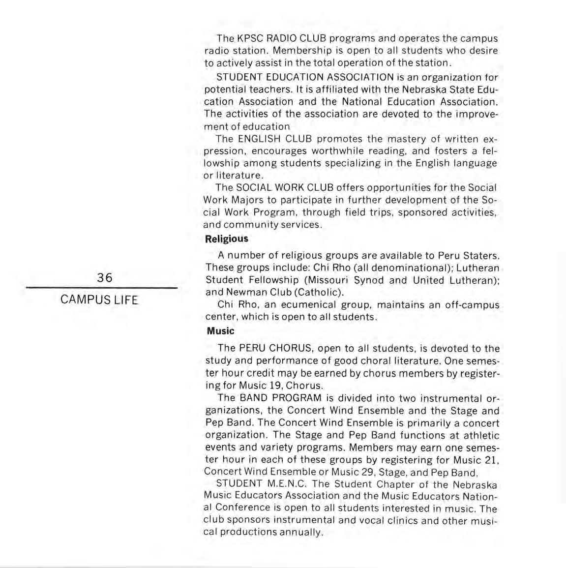 Peru State students have an opportunity to know their teachers well and to become working partners with the staff and other students To live with other young people in college residences offers many opportun i ties for friendsh i p , and growth, and personal development .