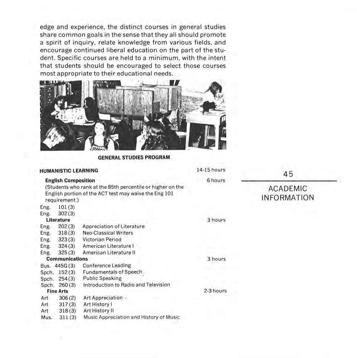 This College believes in academic exce ll ence, in opportunities for personal growth in an atmosphere conducive to growth, and in student se lf -determination cons i stent with the principles of a democratically organized soc i ety . The administration recognizes that college students are a dults and should be involv ed in the decisions made on campus which affect I them. The educational experience provided by the College is des i gned to enable students to l earn , equ ip themse lv es for meaningful careers, and become productive members of society.